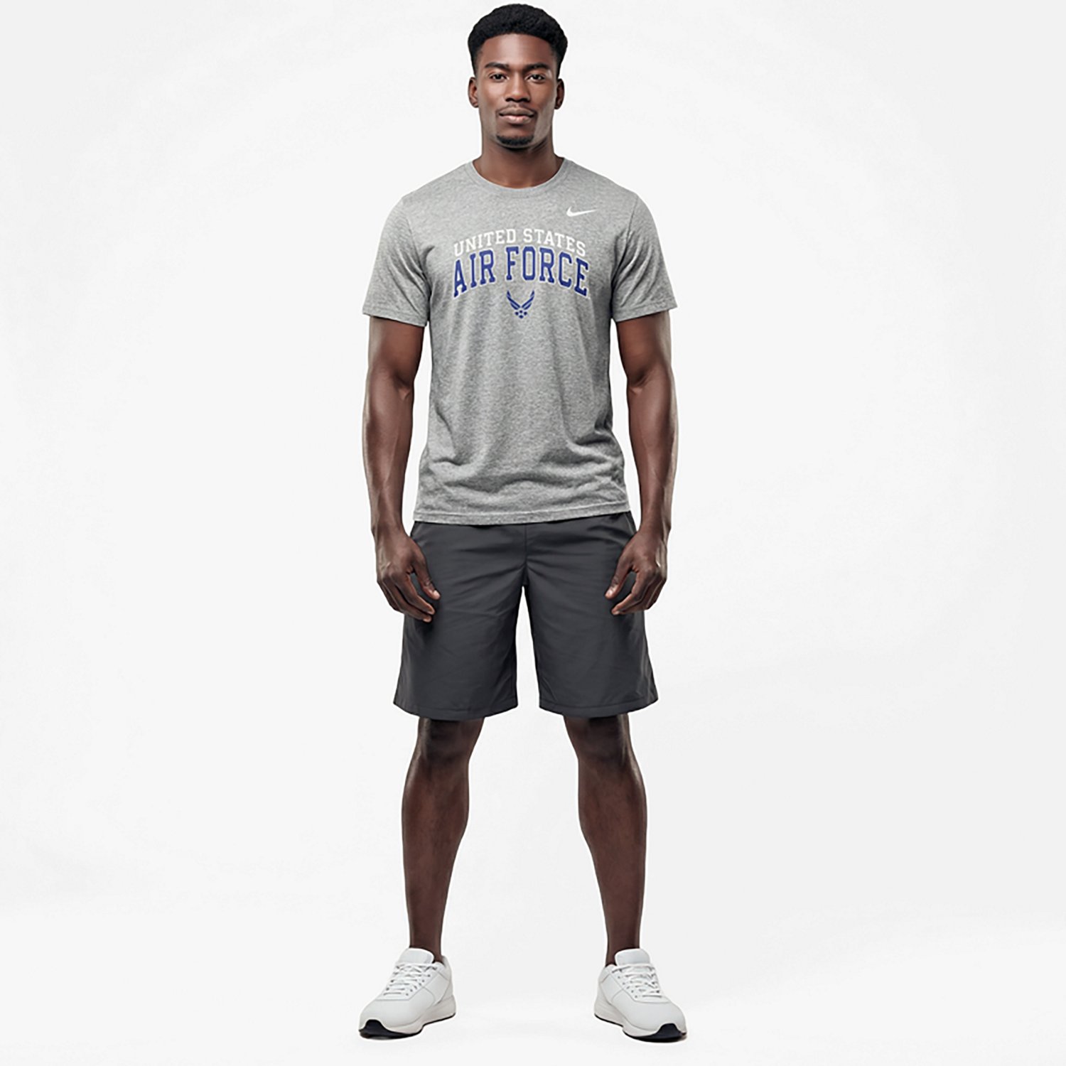 Upgrade your wardrobe with a Nike Men’s Air Force School Arch Over Primary Logo Core Cotton T-shirt. It’s made from 100% ring spun cotton with short sleeves that help you stay cool, and the Air Force graphic on the front adds a patriotic look.