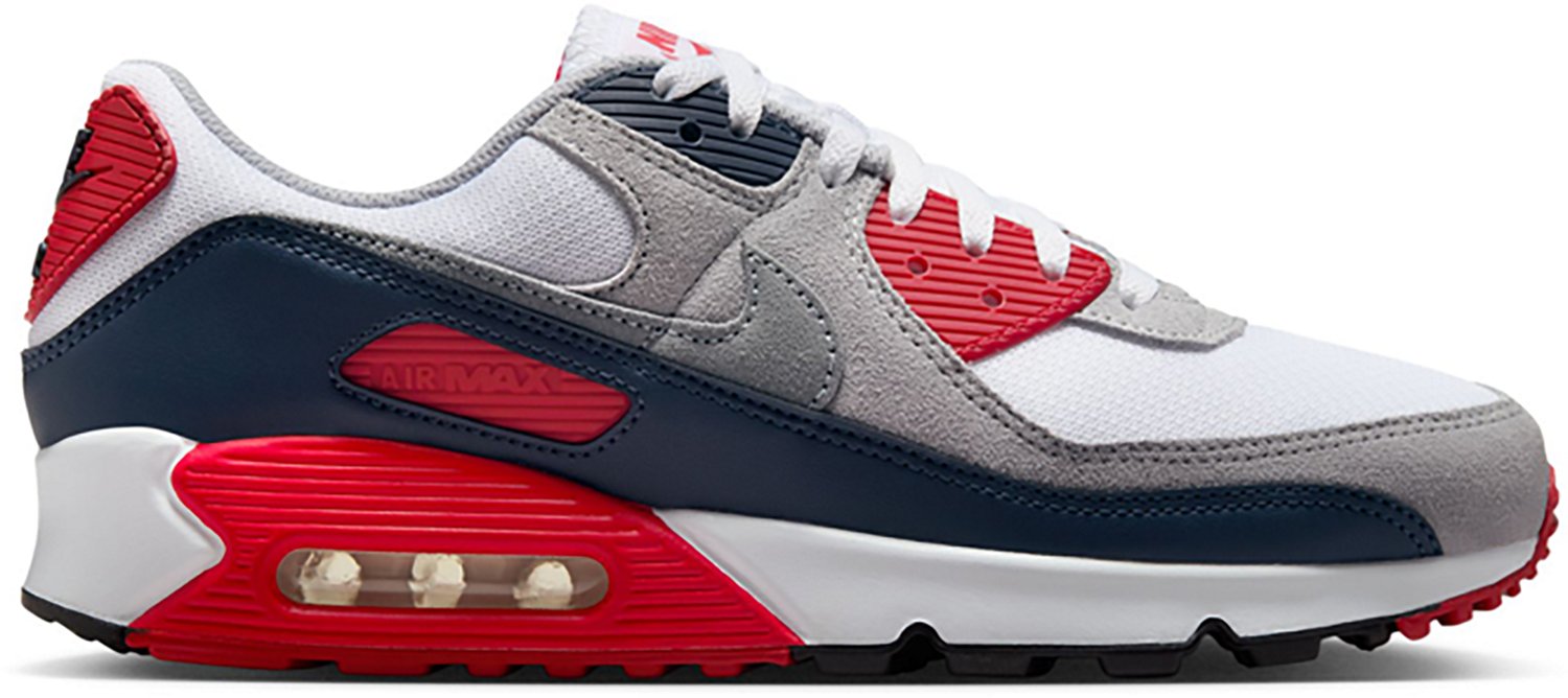 Sport a classic look with the Nike Men’s Air Max 90 Shoes. The Max Air units provide cushioned comfort, while the rubber waffle outsoles afford traction and durability. The padded low top collars offer comfort, and the stitched overlays and TPU accents deliver an iconic 90's look. Available in select stores.
