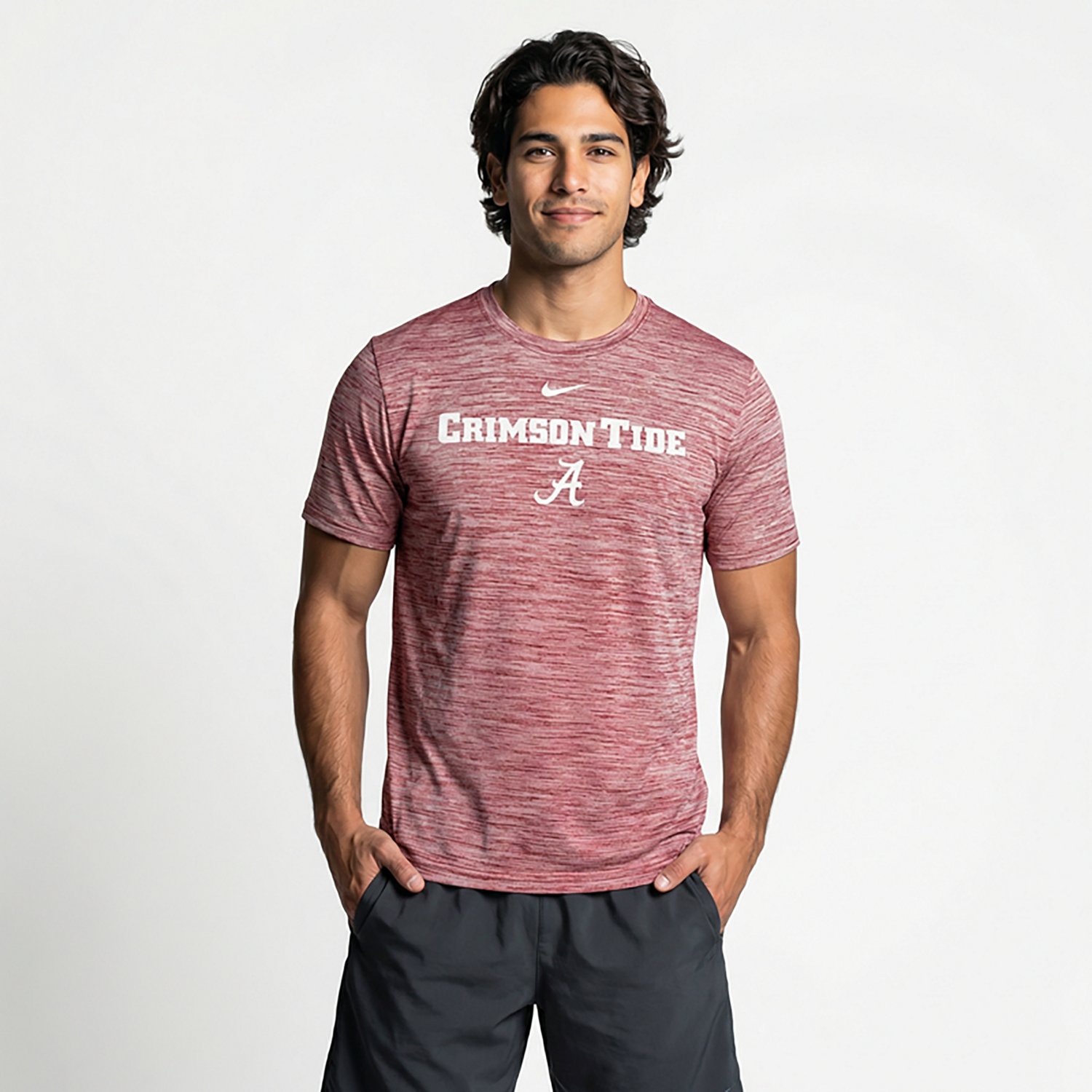 Help showcase your love for your favorite team by wearing the Nike Men's Alabama Dri-Fit Team Velocity T-shirt. This T-shirt offers Dri-FIT technology to help wick away moisture and sweat, and its team design makes it clear which school you cheer for.