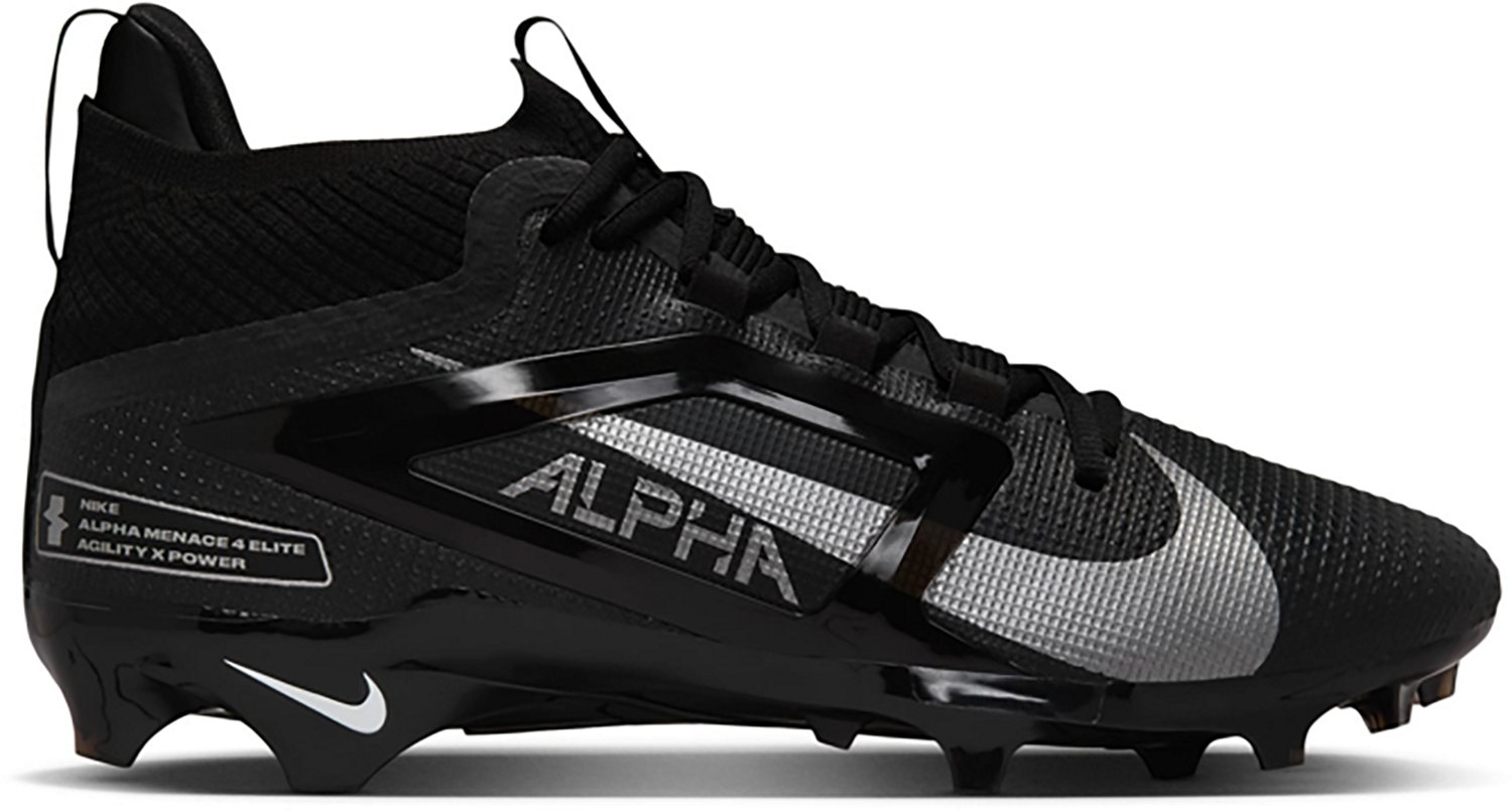 Hit the field with confidence wearing the Nike Men's Alpha Menace Elite Football Cleats. The synthetic leather uppers withstand wear and tear, and the outsoles with a wider stud placement help you maintain your grip on the field. The plastic side cages offer great stability, and the X-Frame bottoms promote flexibility to help with your hard braking and quick cuts.