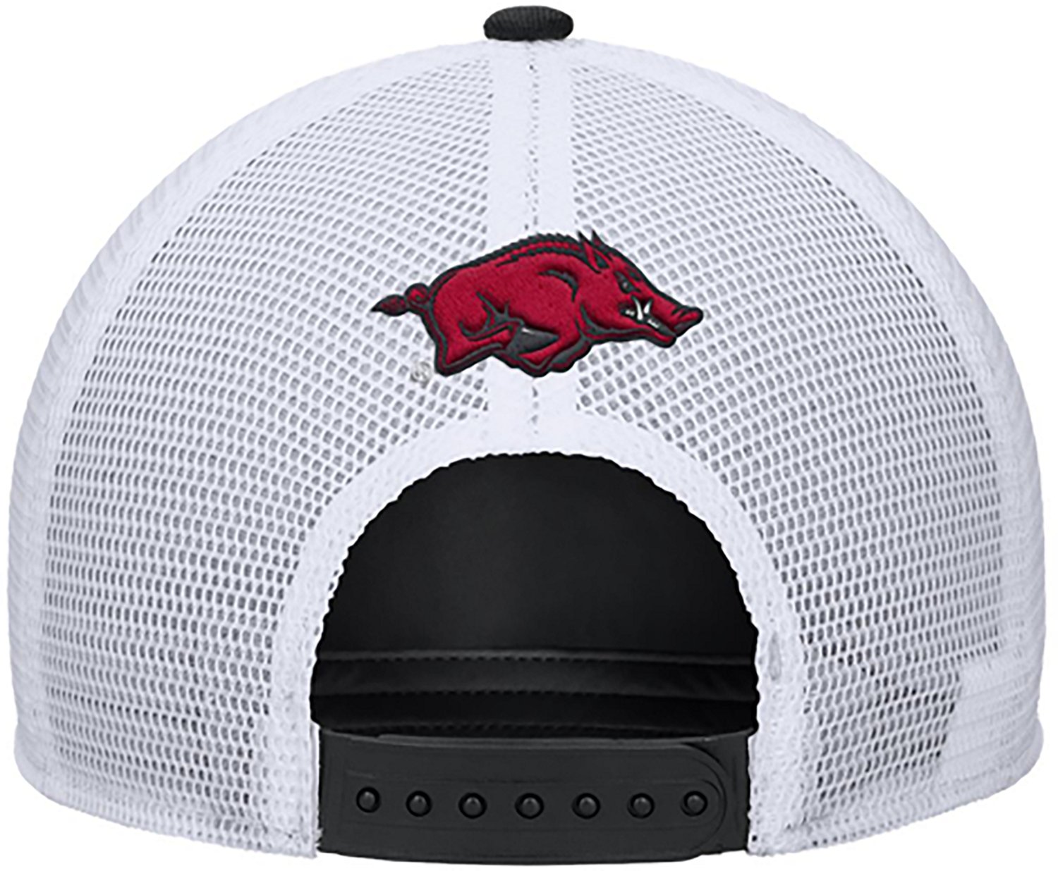 Head to the game while wearing the Nike Men's Arkansas Team Patch Rise Trucker Cap. The cotton front and polyester mesh back provide comfortable wear, while the team graphic puts your fan pride front and center.