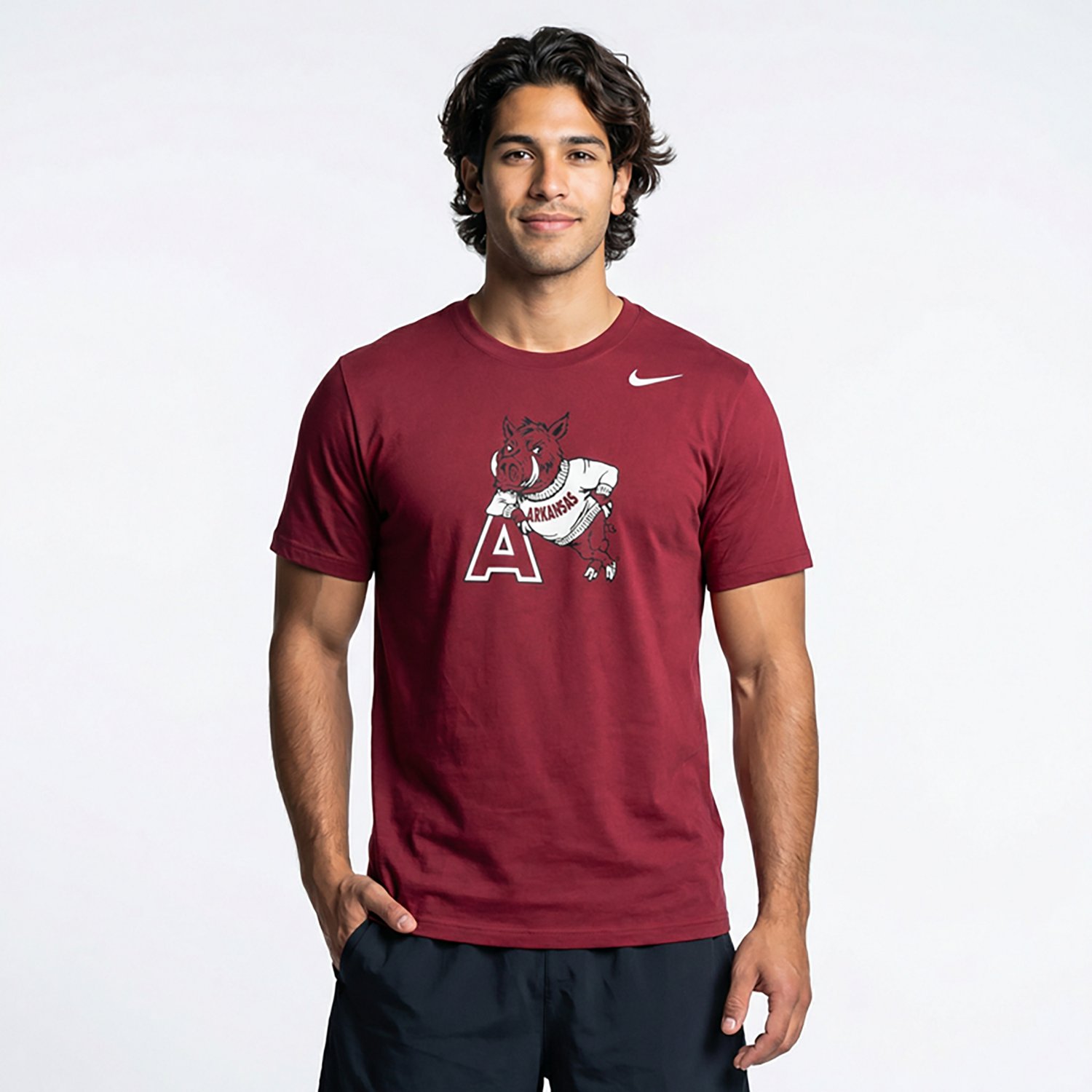 Make a sporty statement wherever you go by wearing the Nike Men's Arkansas Vintage Logo T-shirt. This T-shirt is designed with a team graphic that helps you represent your favorite school and a crew neck and short sleeves for a casual style.