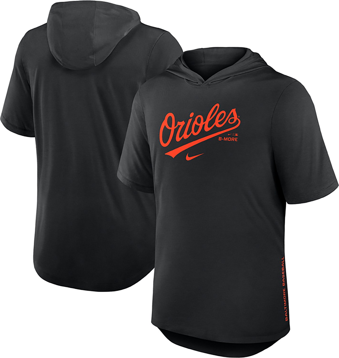 Nike Men's Baltimore Orioles Primetime Arched Wordmark Short Sleeve Hoodie