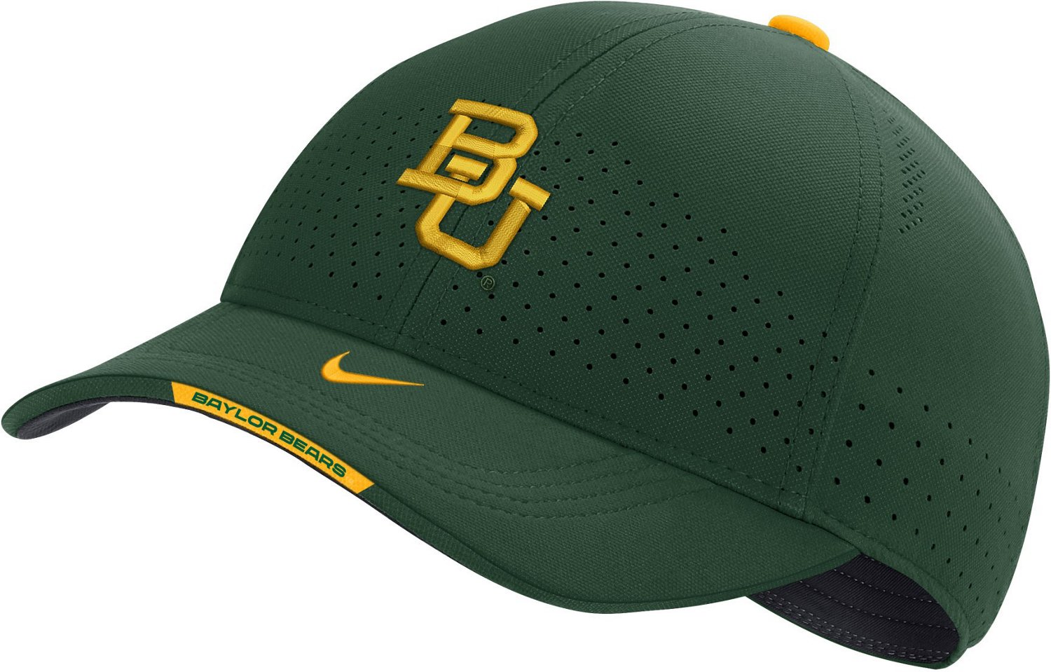 Finalize your game-day look with the Nike Men's Baylor University Sideline C99 Swoosh Flex Cap. The 6-panel Swoosh Flex silhouette and Aerobill visor provide a sleek, comfortable design. Team name and logo show everyone you're a Baylor Bears fan.