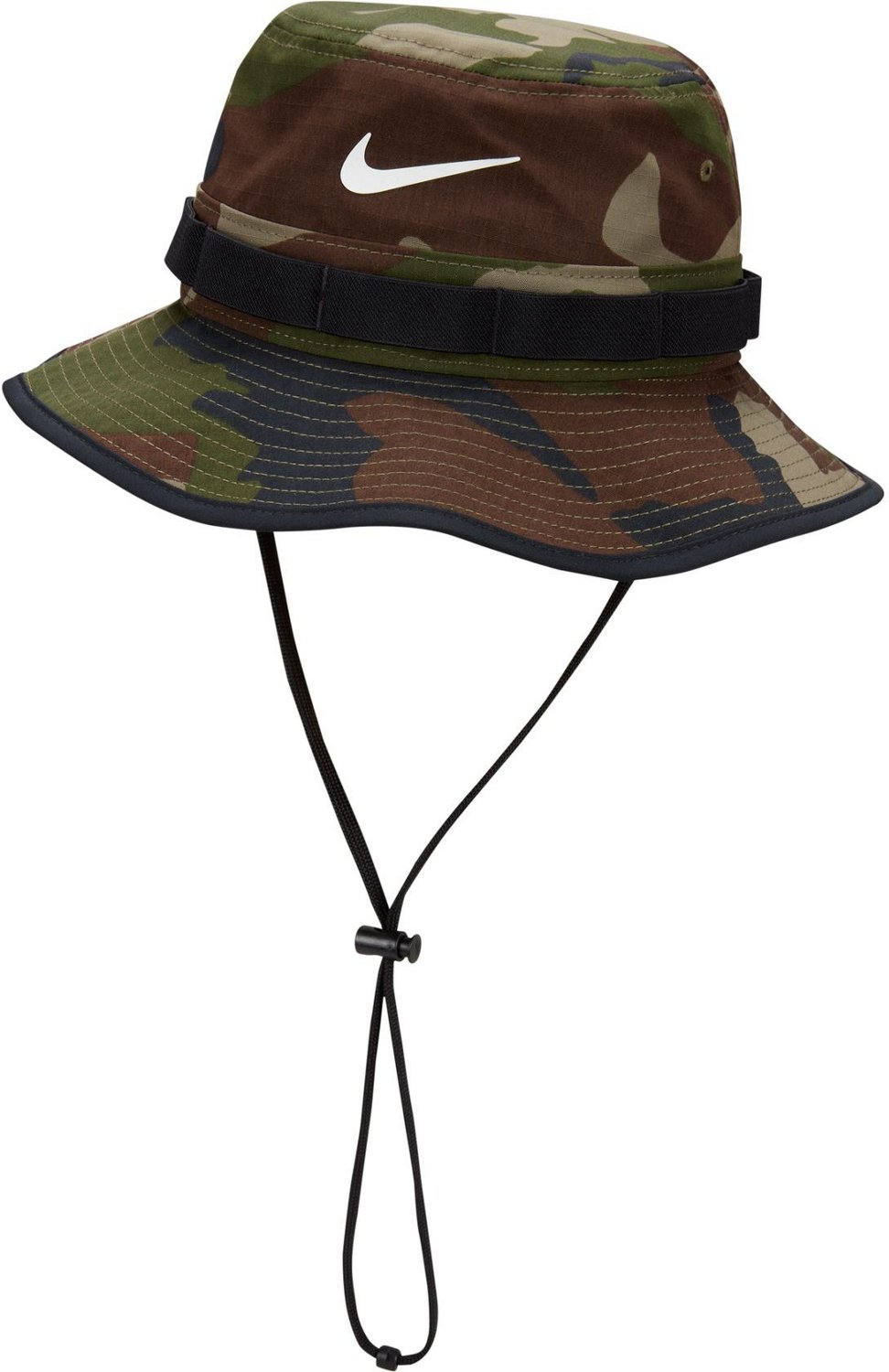 Stay shaded wearing the Nike Men's Camo Apex Bucket Hat. This bucket hat is made with polyester ripstop fabric for durability. The mid-depth bucket design gives you 360 degrees of coverage, while the adjustable drawstring cinches up and down for a secure fit.