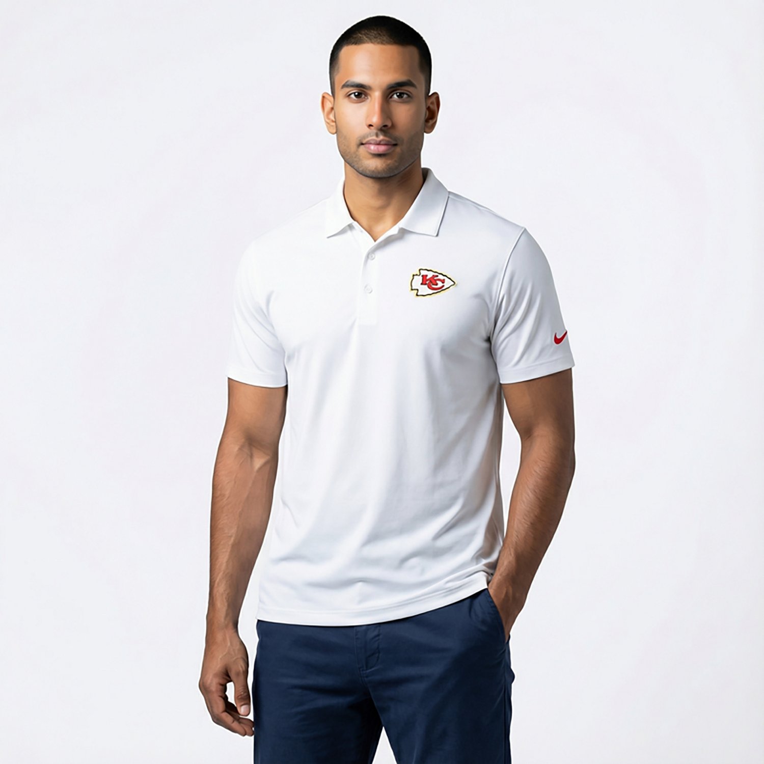Features and Benefits Dri-FIT fabric technology helps wick away moisture Short sleeves Collared neckline Team design helps you celebrate Specifications Clothing Type: Casual Shirts Neckline: Collar Product Type: Shirts Sleeve length: Short Sleeve Material technology: Dri-FIT Age Group: Adults' Activity: Pro Sports Style: Polo Gender: Men's Size Range: Men's Moisture Wicking: Yes What's in the Box Nike Men's Chiefs Dri-FIT Sideline Woven Coach's Polo Shirt