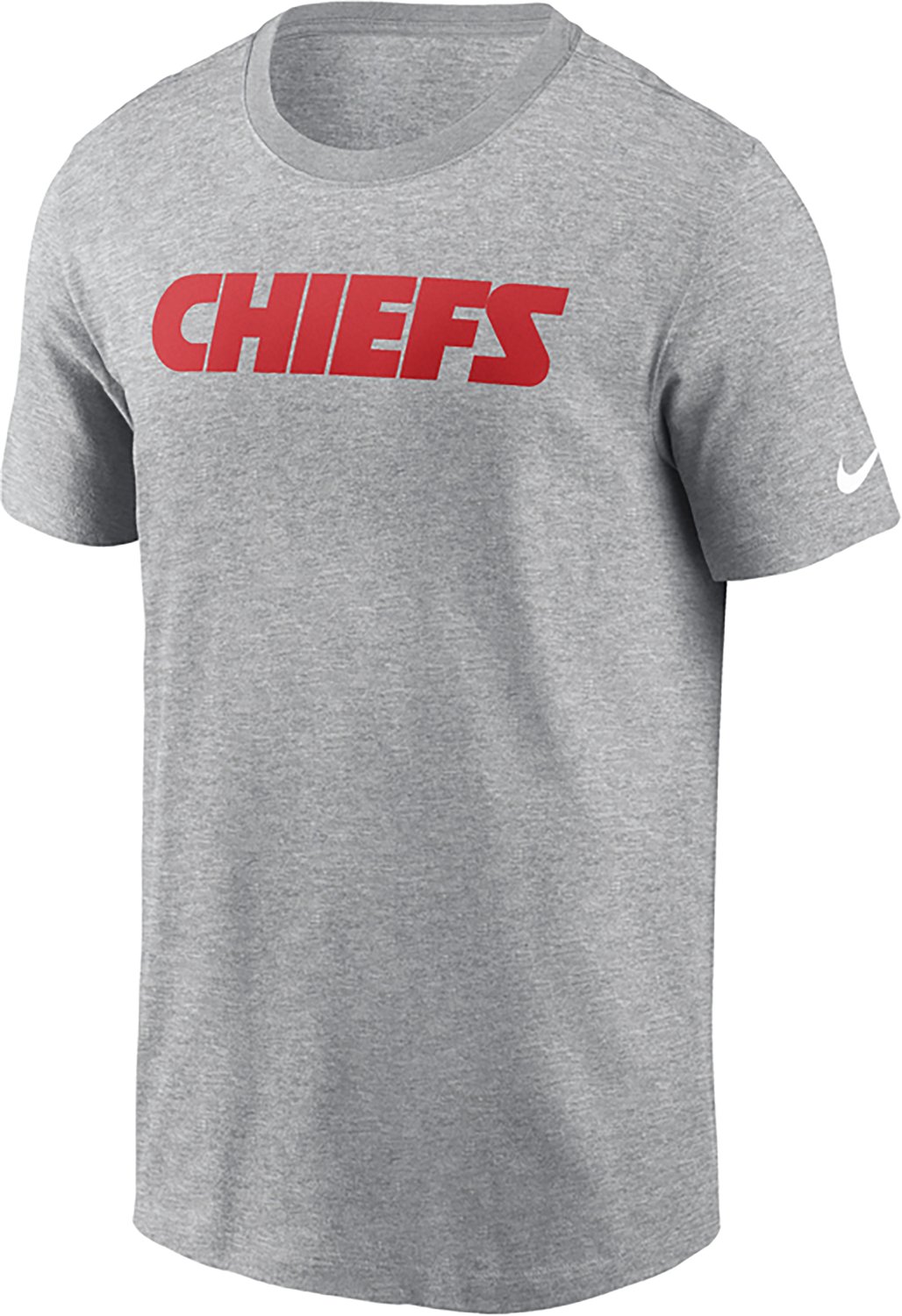 Get ready to celebrate another victory with friends and family while wearing the Nike Men's Chiefs Wordmark Essential T-shirt. This T-shirt features a team design to help showcase your loyalty and short sleeves that bring a casual style for everyday wear.