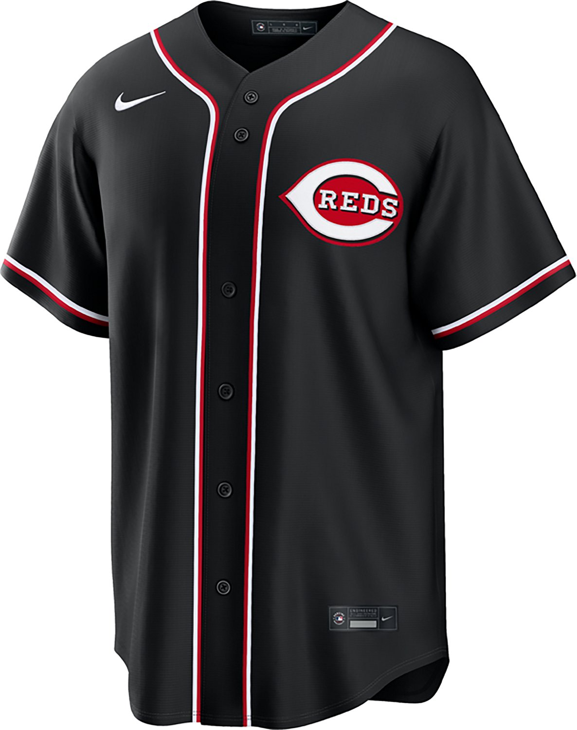 Gear up for game day with the Nike Men's Cincinnati Reds Carbon Replica Jersey. The short sleeves and V-neck provide a comfortable fit, while the graphic design shows off your Reds pride.
