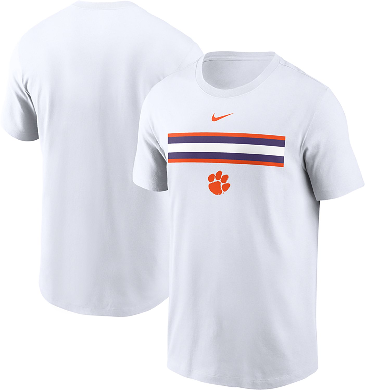 Let everyone know you're a dedicated fan when you wear the Nike Men's Clemson Stripe Cotton T-shirt. The shirt is decorated with a team graphic to show off your fan pride.