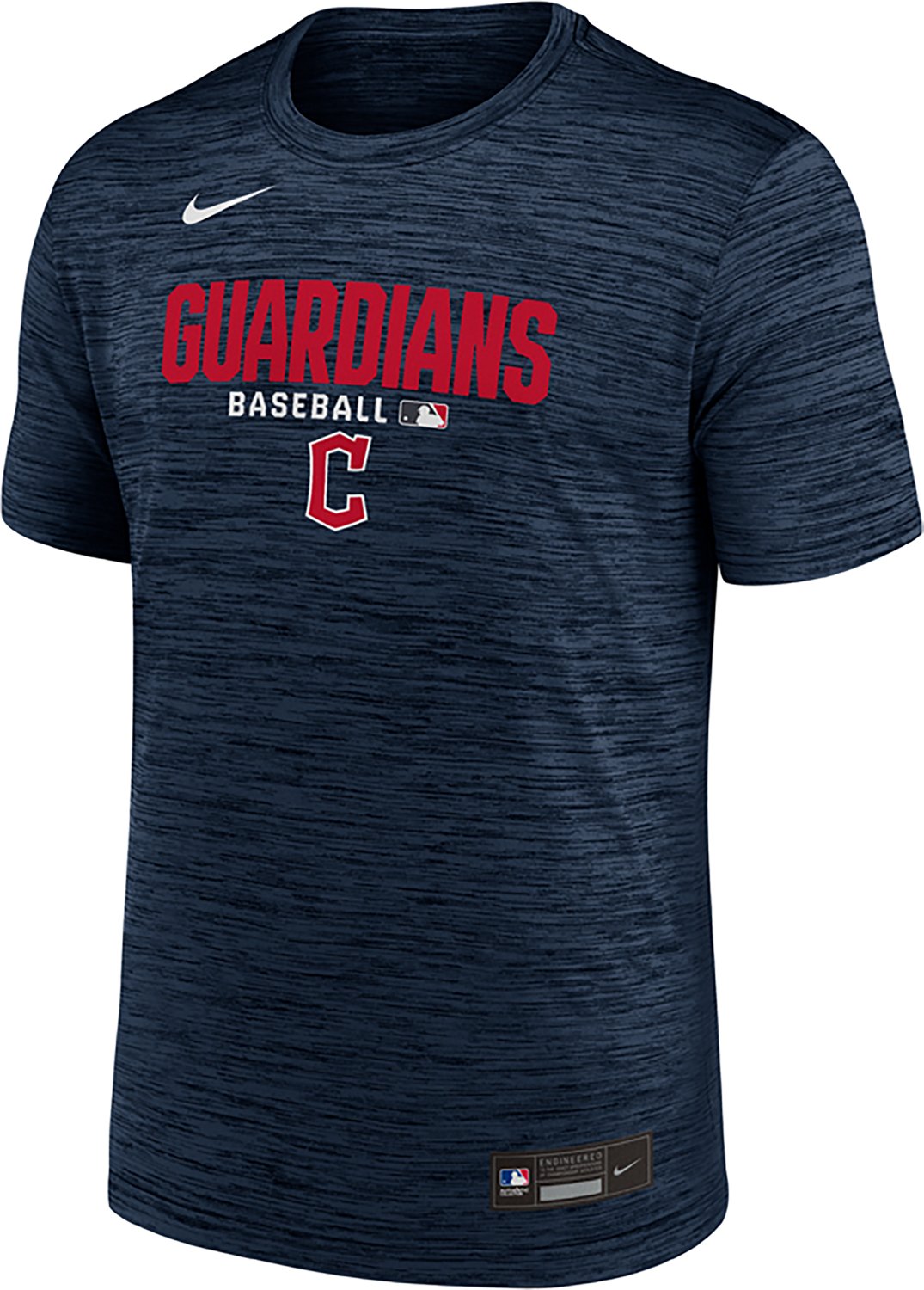 Cheer on your favorite team with the Nike Men's Cleveland Guardians AC Velocity T-Shirt. This lightweight tee lets you move freely, and the Guardians graphic highlights your love for Cleveland baseball.
