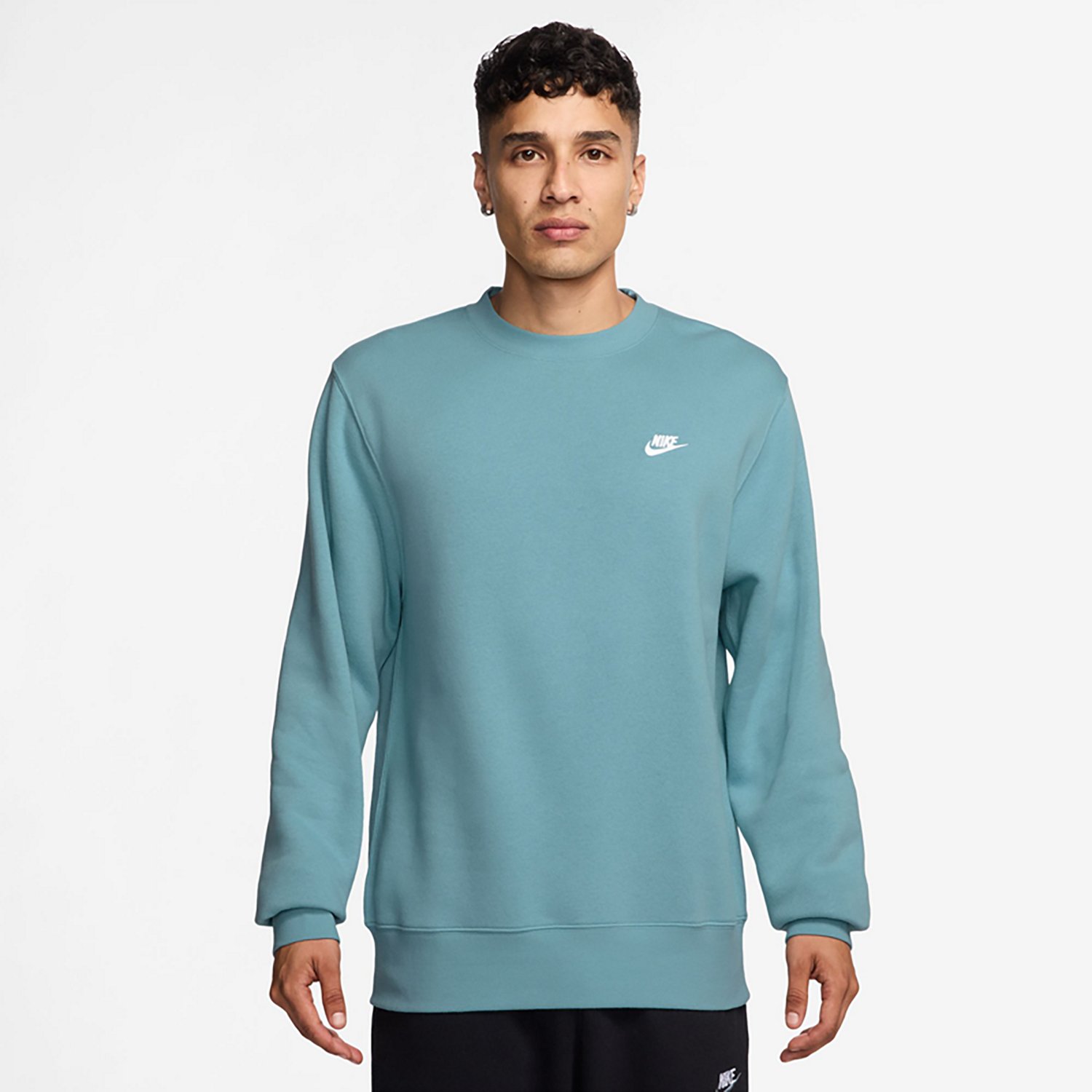 Obtain comfortable style with this Nike Men's Club Fleece Crew. The hoodie has a ribbed hem and cuffs for a structured feel and look, and it is designed with an embroidered Nike Futura logo on the chest for a subtle aspect of design.