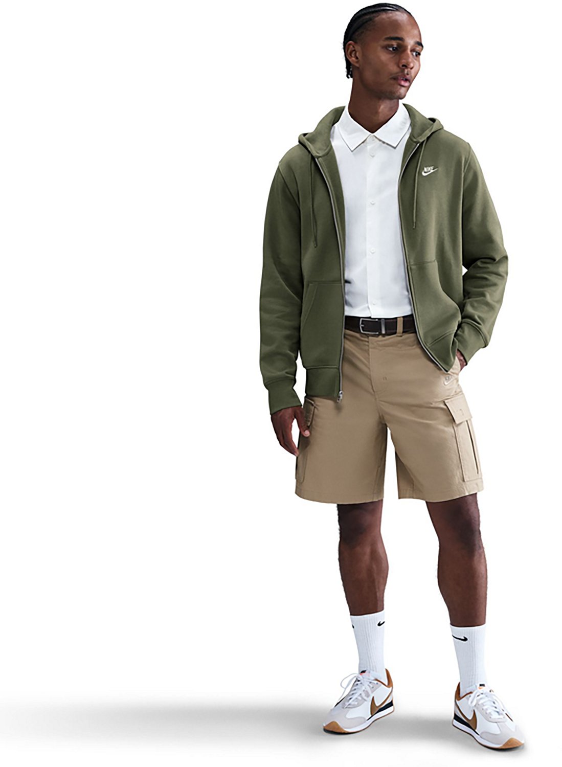 Sport a clean look with the Nike Men's Club Full Zip Fleece Hoodie. The cotton and polyester material provides a comfortable feel, while the brushed fleece interior delivers a soft, warm touch. The double-layer hood and braided drawstring combo offers coverage, and the embroidered Futura logo adds a touch of style.