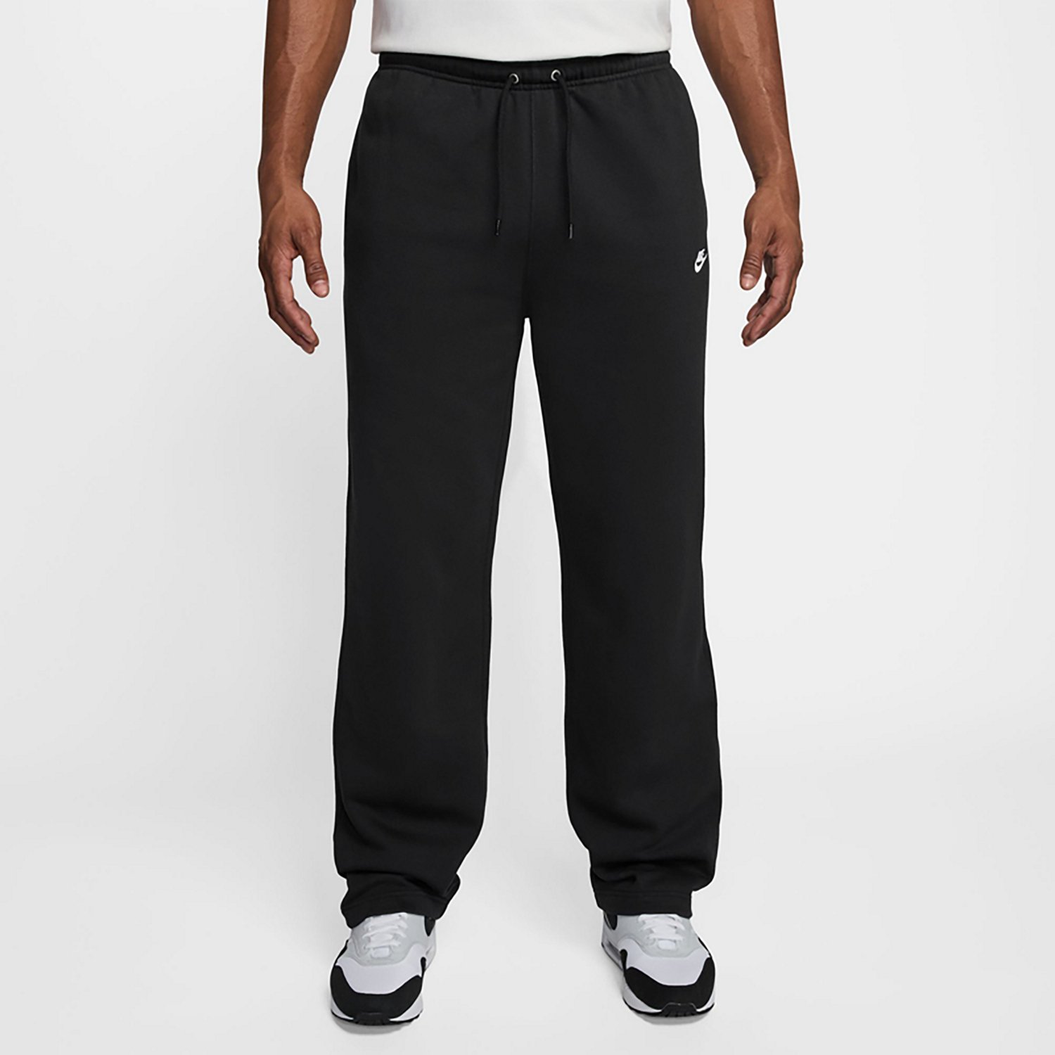 Look and feel smooth with the Nike Men's Club Open Hem Brushed Fleece Pants. The cotton and polyester material provides a comfortable feel, while the elastic waistband and drawstring combo offers an adjustable fit. The embroidered Nike Futura logo adds a stylish touch.