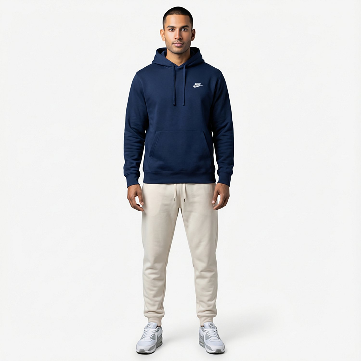 Obtain comfortable style with this Nike Men's Club Pullover Fleece Hoodie. It features a pouch pocket for small storage and to keep your hands warm, and the hoodie has a ribbed hem and cuffs for a structured feel and look. Features an embroidered Nike Futura logo on the chest.