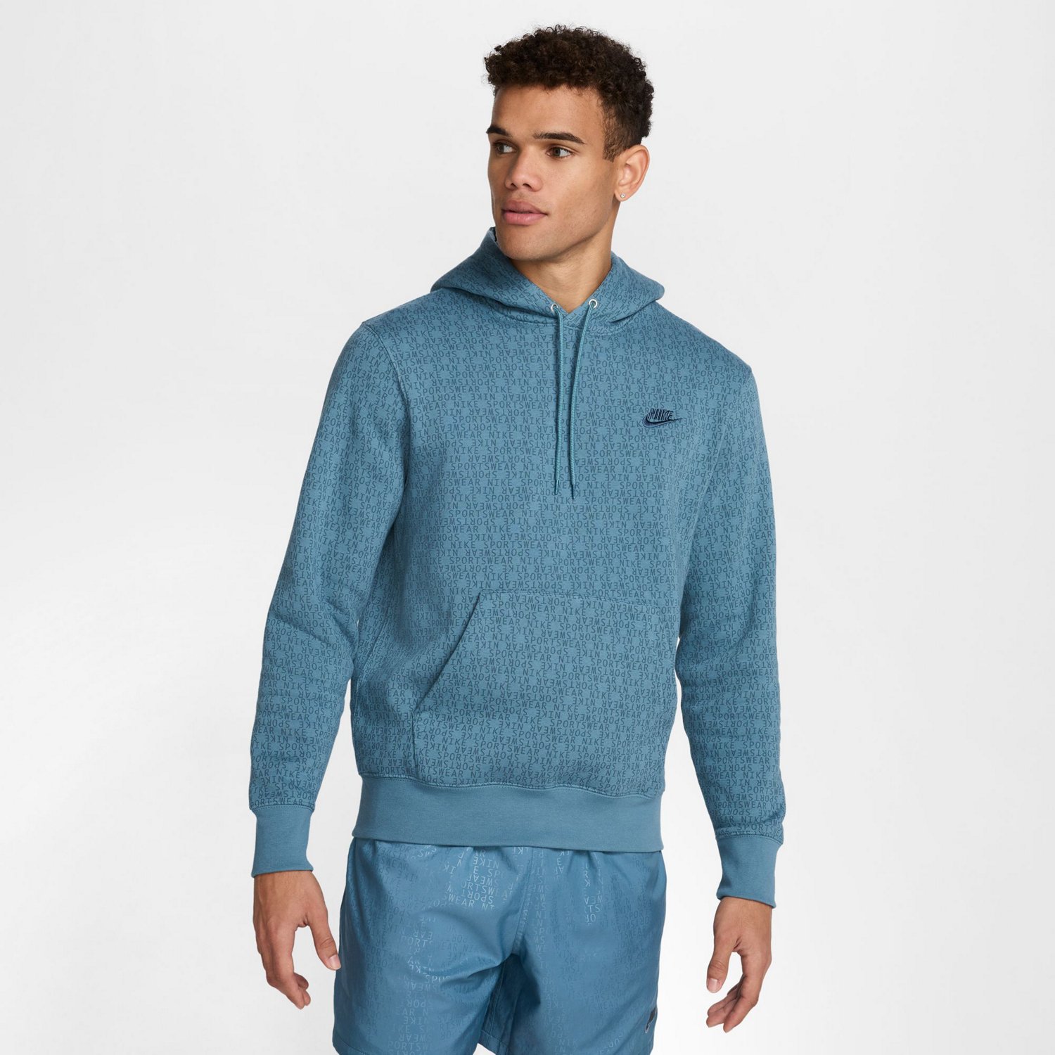 Keep it casual with the Nike Men's Club Pullover Hoodie. The hood provides coverage, while the allover print offers a stylish look. The cotton and polyester material delivers a soft feel.