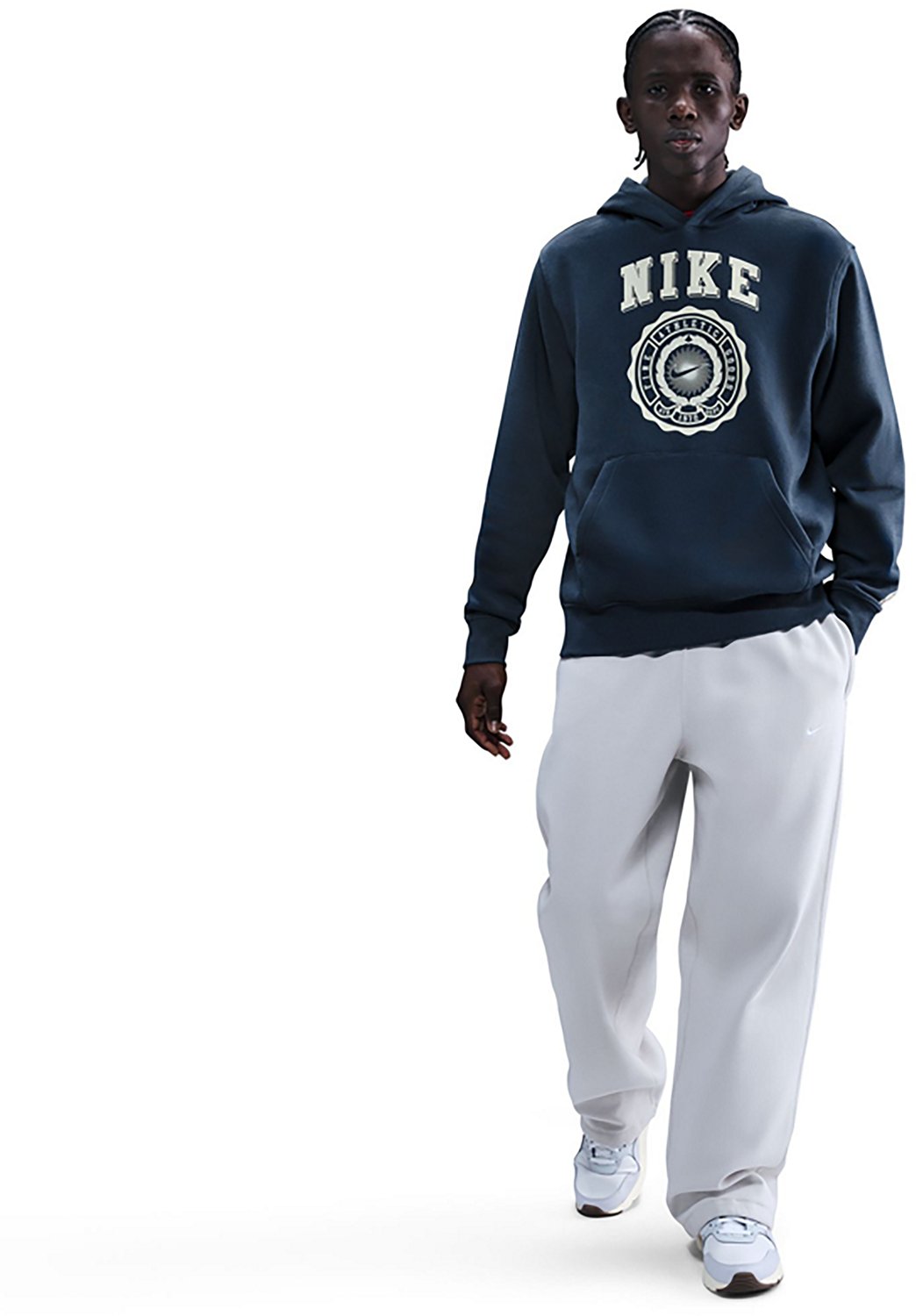 Relax in style with the Nike Men's Club Pullover Hoodie. The hood provides coverage, while the graphic design adds a stylish touch. The cotton and polyester material offers a comfortable feel.