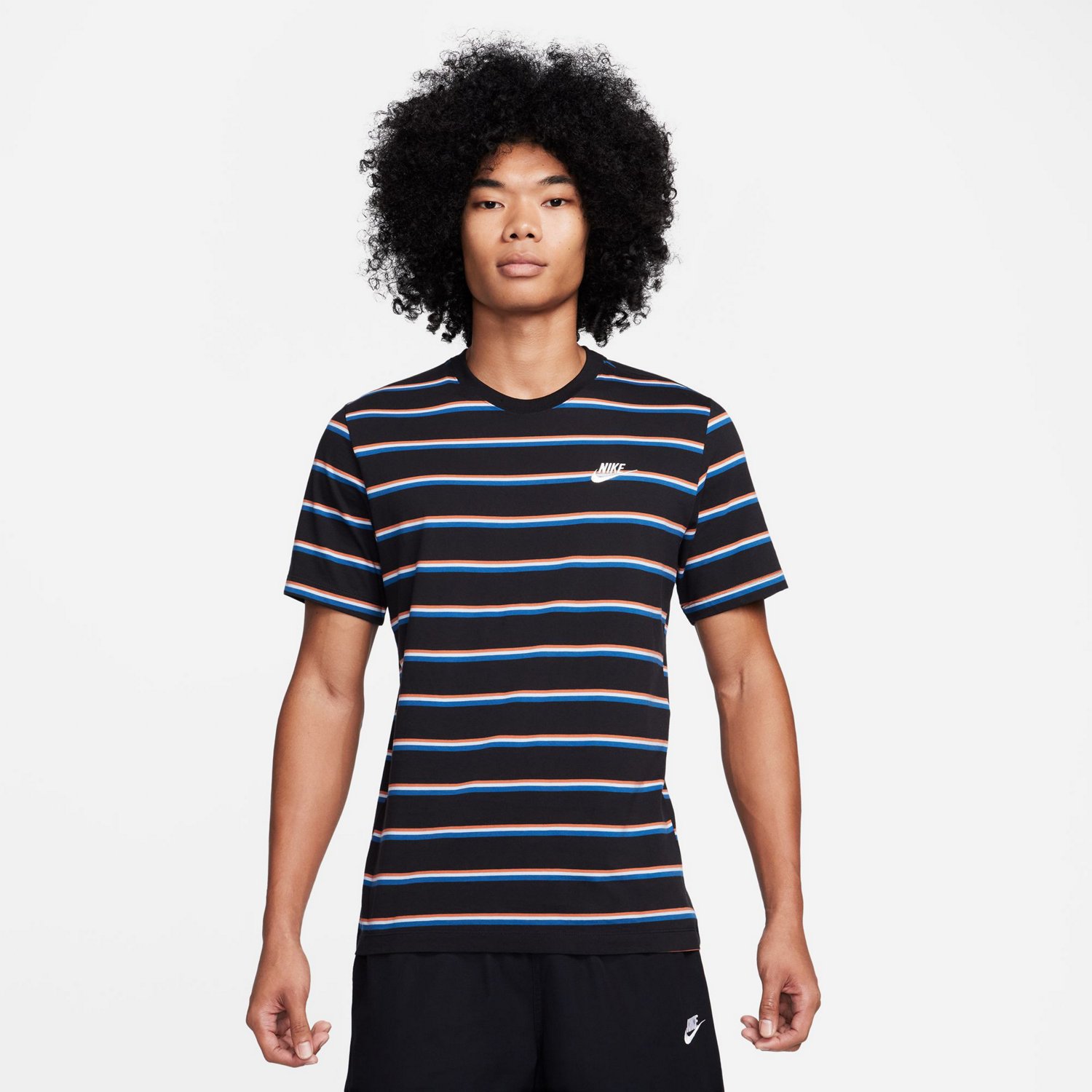 Wear the Nike Men's Club Stripe T-shirt for any everyday occasion. Made of 100% cotton for comfort, this shirt sports a Nike Futura logo on the left chest for a classic look. The shirt also comes with a striped pattern for a unique appearance.