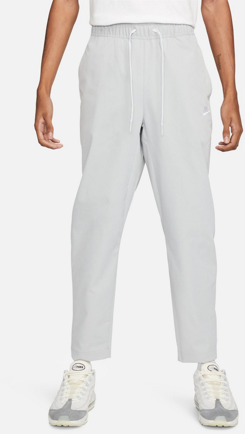 Get ready to move in the Nike Men's Club Woven Taper Leg Pants. These pants are made from cotton and polyester woven twill fabric for all-day comfort and have an adjustable elastic waistband for a secure fit. The paneled construction is designed to follow the shape of your legs for easy movement.