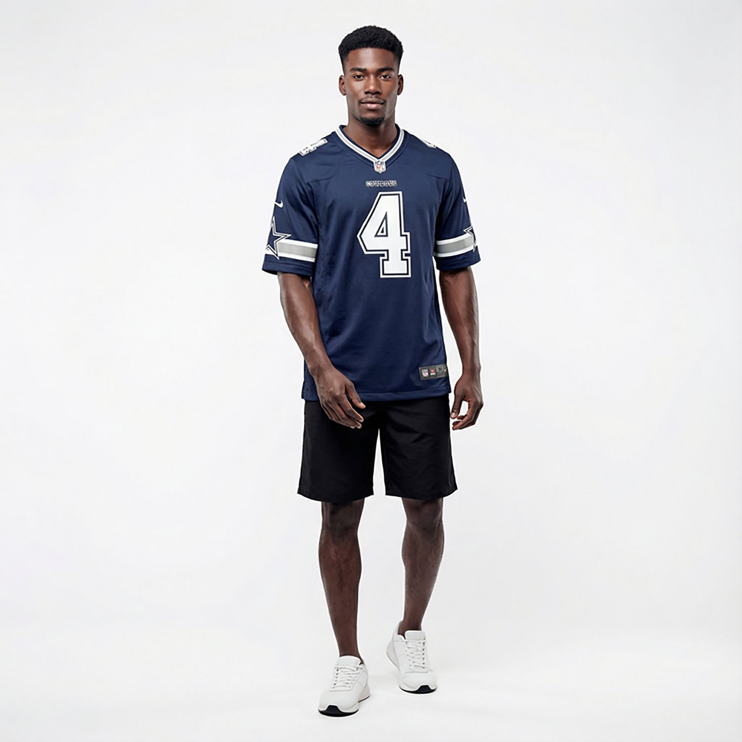 Support your favorite NFL player with the Nike Men's Dallas Cowboys Prescott Game Jersey. Constructed with polyester material, this jersey provides a comfortable feel, while the mesh side panels promote breathability. The screen-printed name, numbers and team marks display your Cowboys pride.