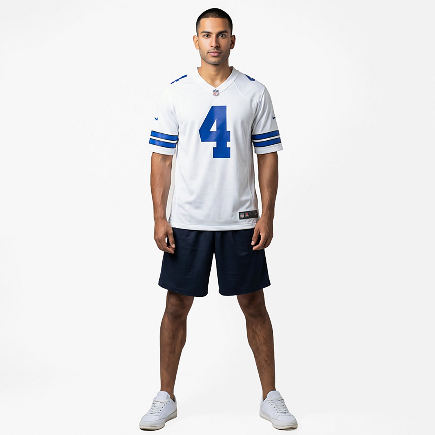 Support your favorite NFL player with the Nike Men's Dallas Cowboys Prescott Game Jersey. Constructed with polyester material, this jersey provides a comfortable feel, while the mesh side panels promote breathability. The screen-printed name, numbers and team marks display your Cowboys pride.