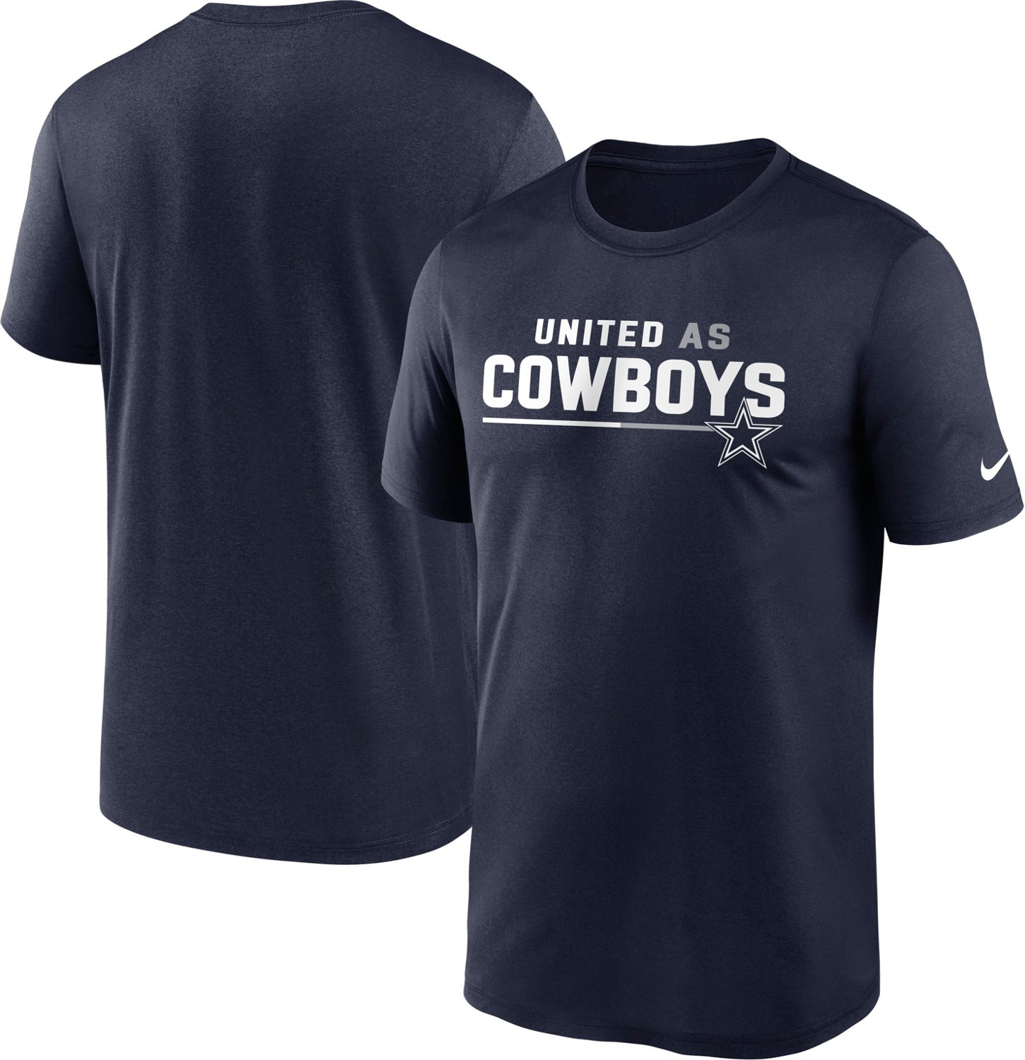 Support your team wearing the Nike Men's Dallas Cowboys Team Shoutout Legend T-shirt. This T-shirt is made of 100% polyester fabric for comfortable wear and has a "United As Cowboys" graphic on the front shows your team spirit
