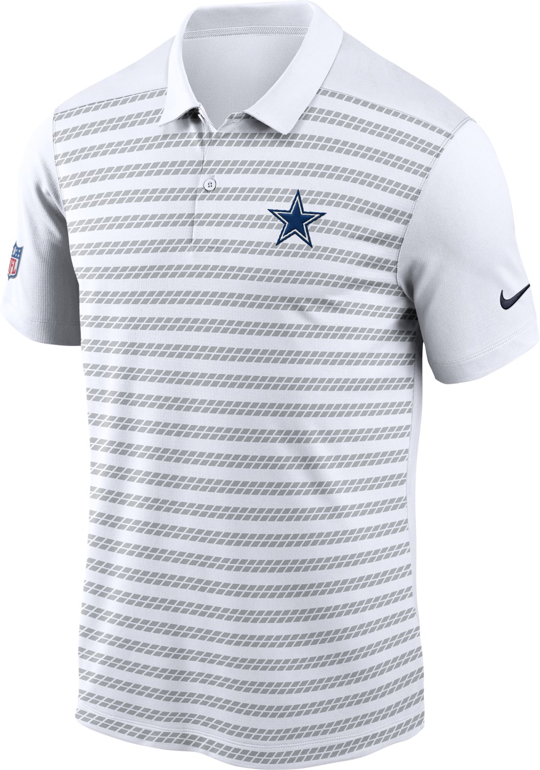 Cheer on your favorite football team in the Nike Men's Dallas Cowboys Victory Polo Shirt. Designed for all-day comfort, this shirt is made of moisture-wicking polyester for a lightweight and natural feel. The sublimated stripes and Cowboys logo add style while putting your fandom on full display.