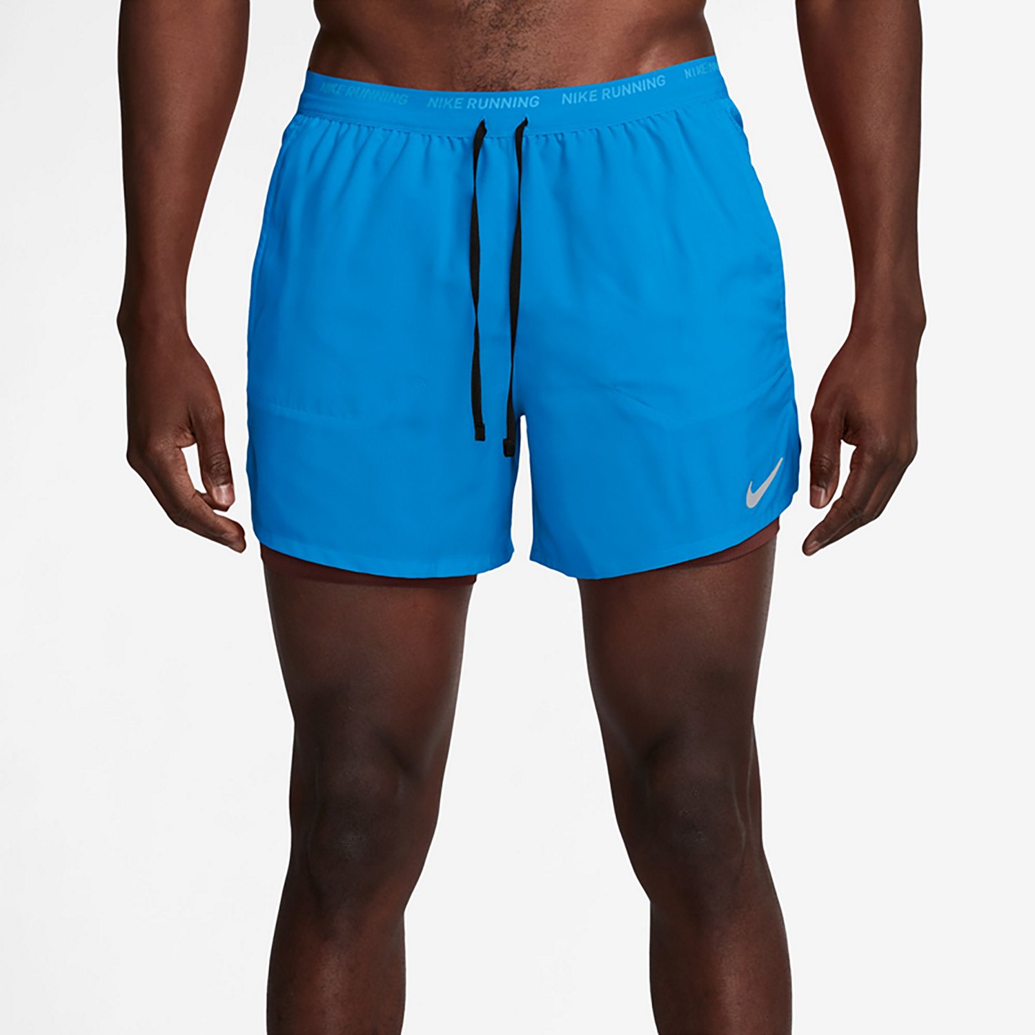 Reach your running goals in the Nike Men's Dri-FIT Stride 2 in 1 Shorts 5 in. The 100% polyester body construction offers a long-lasting feel, and the Dri-FIT technology helps keep you dry. The side pockets provide room to conceal items, and the narrow waistband with drawstring delivers a custom fit.