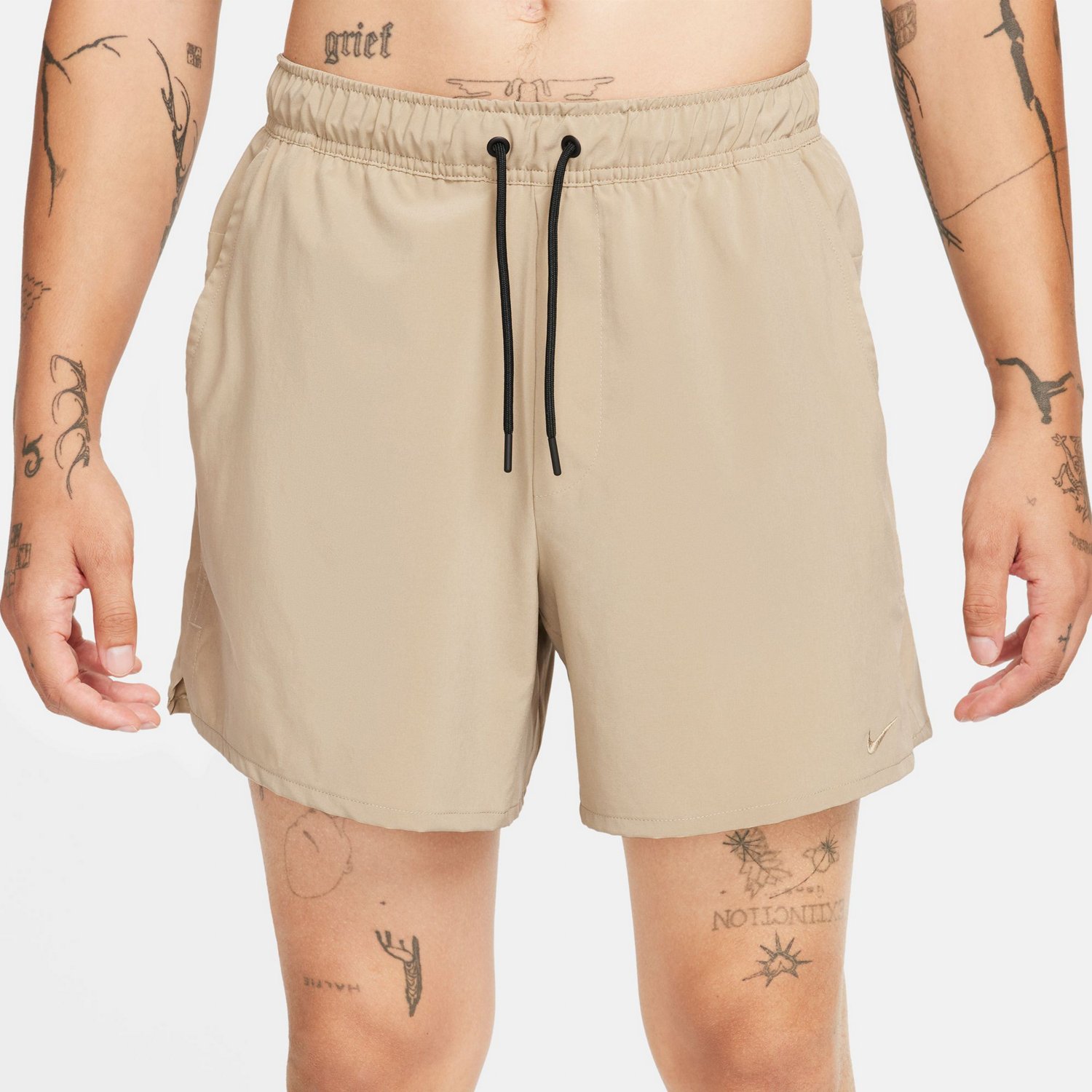 Put on the Nike Men's Dri-FIT Unlimited Unlined Fitness Shorts 5 in and dominate your workout. These shorts are made with a dependable waistband with a drawstring and polyester and spandex stretch woven fabric to offer a comfortable fit and feel, and the Dri-FIT fabric technology helps keep you cool and dry by wicking moisture.