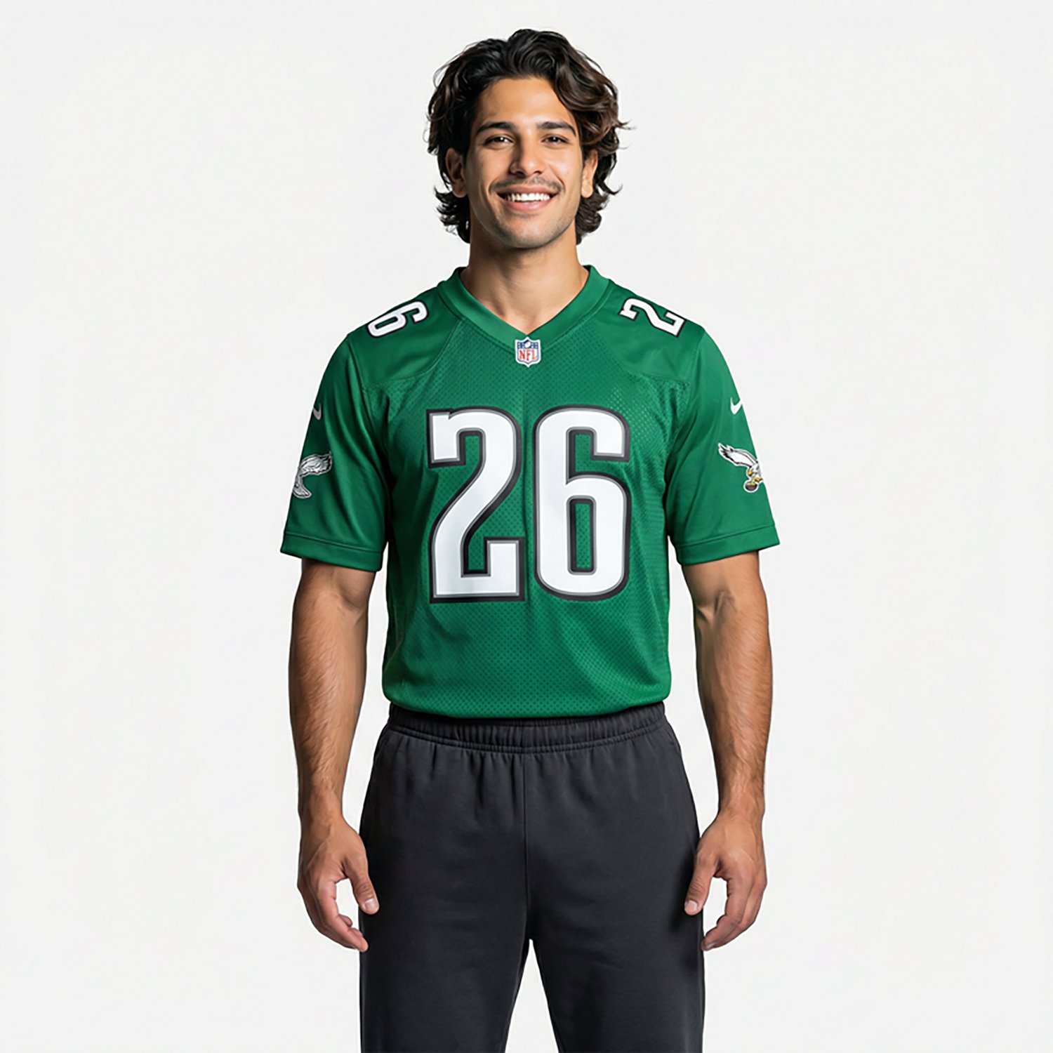Prove your fan loyalty when you wear the Nike Men's Eagles Saquon Barkley Alt 2 Game N&N Jersey. Designed to offer an authentic on-field appearance, this jersey features team graphics to showcase your fandom.