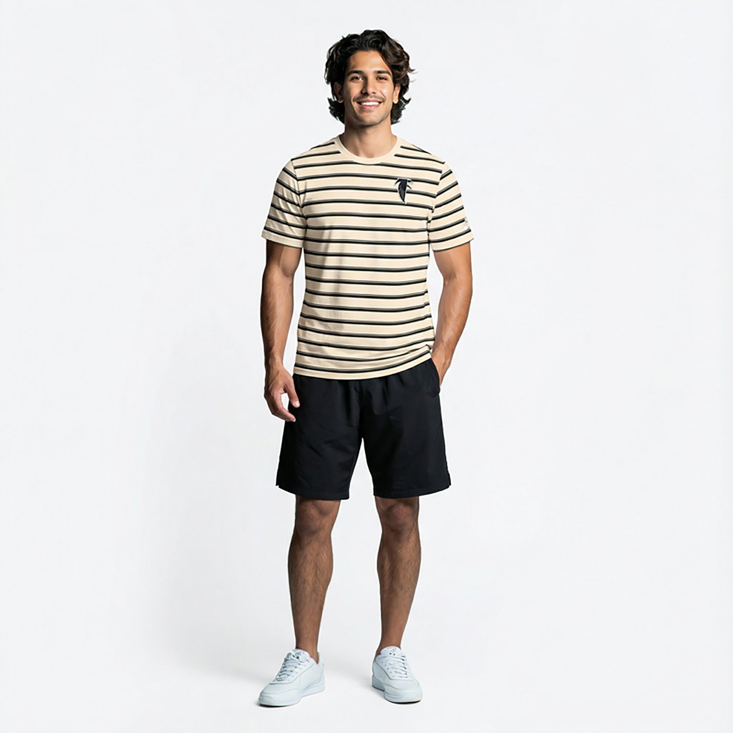 Make sure everyone knows which team you support by wearing the Nike Men's Falcons Rewind Club Striped T-shirt. This T-shirt provides a team graphic to help boast after each victory, and its short sleeves provide a casual style.