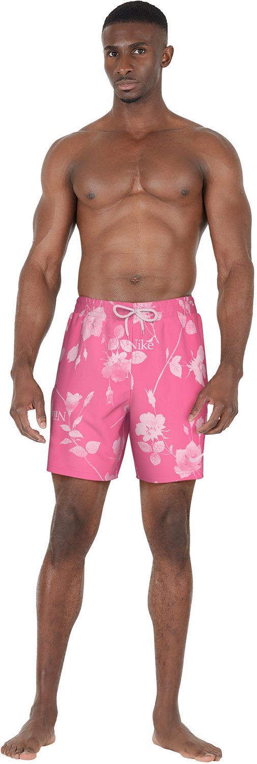 Splash around in the Nike Men's Fine Floral Volley Swim Shorts 7 in. Their fabric is water resistant. The body is made of 90% polyester and 10% spandex, and their lining is made of 92% polyester and 8% spandex. The Floral print all over with Nike verbiage adds to the design.