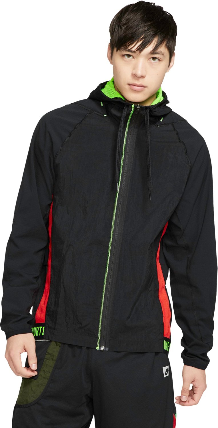 Warm up or cool down in the Nike Men's Flex Full-Zip Hooded Training Jacket. This athletic jacket is made with 100% lightweight nylon with mesh sides that help to keep you cool. Dri-FIT technology helps to keep you dry, while the Nike™ Flex fabric allows for mobility. Front pockets stash your essentials and keep your hands warm, while the lined hood with drawstring adds a cozy feel. Multiple Nike™-themed graphics and the back with a layered look add a sporty feel.