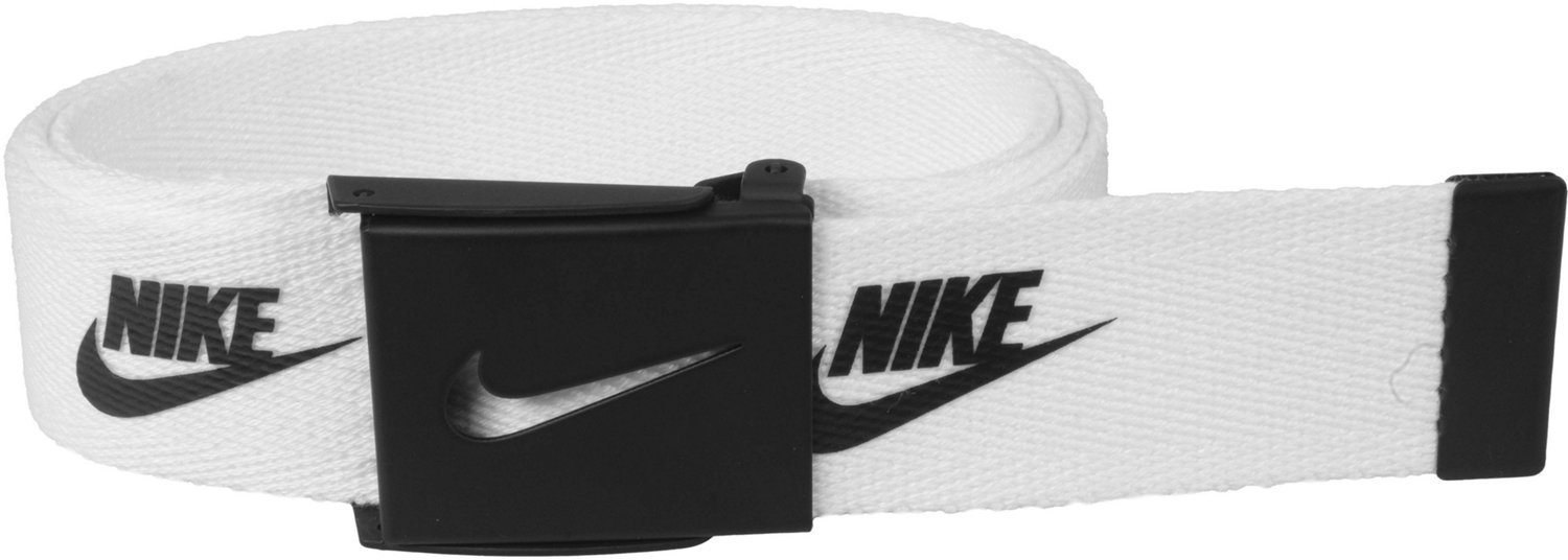 Add sporty style to your look with the Nike Men's Futura Logo Reversible Web Belt. The polyester construction provides long-term durability, and the length can be adjusted to fit your needs. The belt features a reversible design with a Nike "Futura" logo print on one side and solid on the other for versatile style.