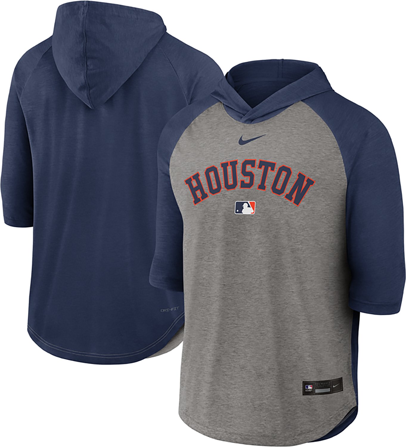 Get support from fellow fans when you put on the Nike Men's Houston Astros 3/4 Sleeve Flux Hoodie Shirt to watch the next Astros game. The shirt features 3/4-length sleeves and a hood to provide a unique twist on a traditional style, and the chest boasts a team graphic that will hit home with true fans.