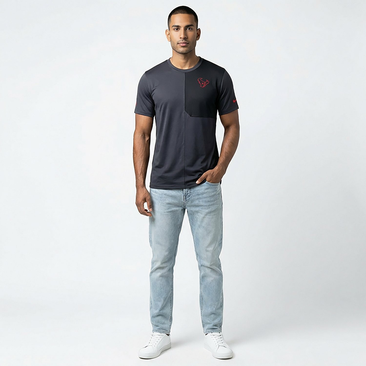 Stay comfortable on game day in this Nike Men's Houston Texans Dri-FIT Coach UV Short Sleeve T-shirt. It features Dri-FIT technology to help keep you dry and comfortable, and the shirt has a contrasting chest design for a sleek style. Features a team logo on the chest.