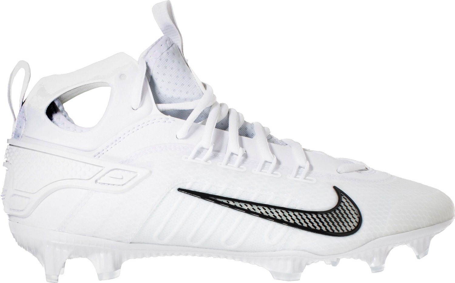 Dominate the field with the Nike Men's Huarache 9 Elite Mid LAX Cleats. The synthetic uppers afford durability, while the Nike React foam offers improved quickness and comfort. The X fit heel system delivers a locked-in feel.