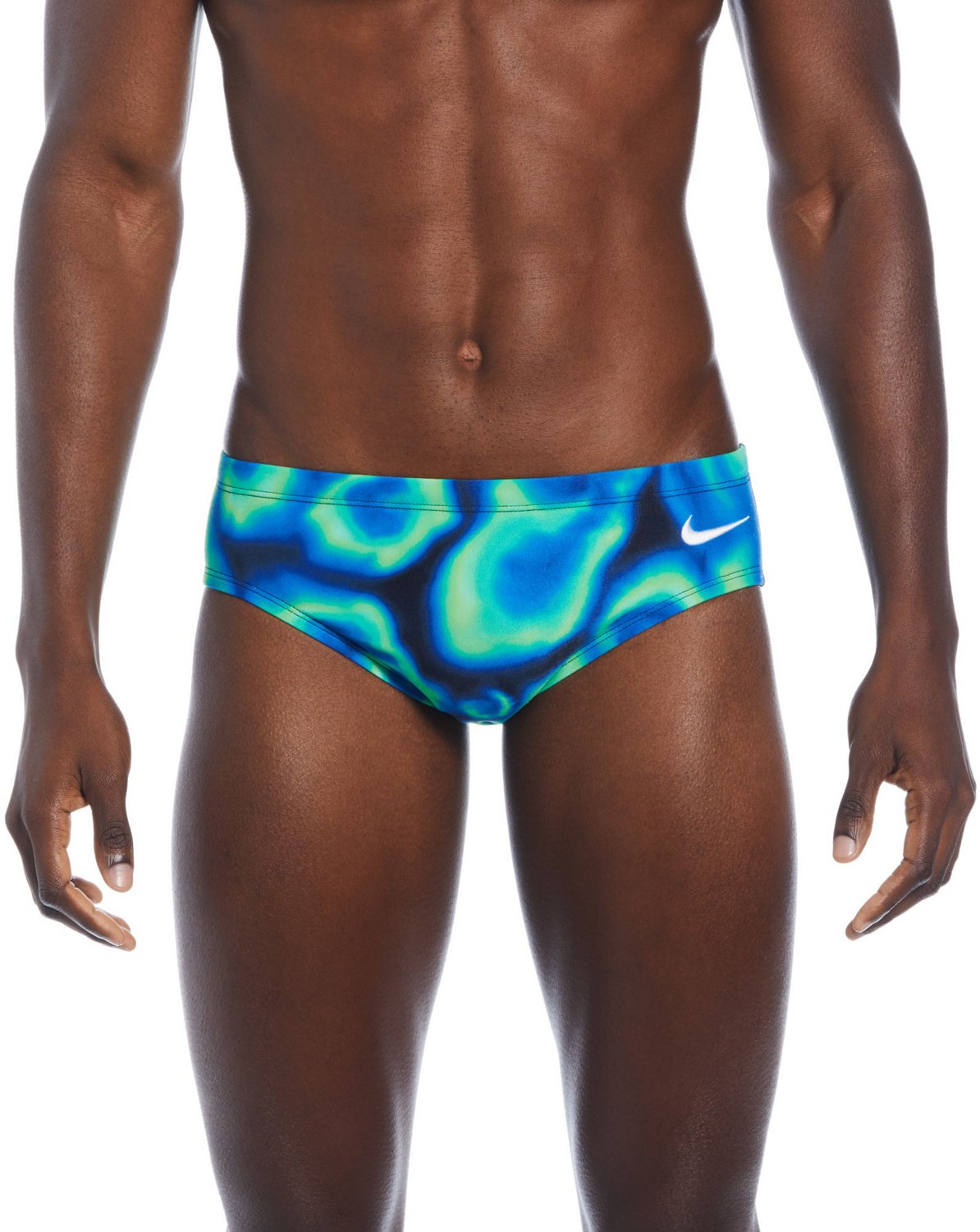 Gear up and rise to the occasion in the Nike Men's HydraStrong Digi Haze Swim Briefs. The interior drawstring lets you tighten or loosen the fit with ease, and the recycled polyester and elastolefin HydraStrong construction withstands wear and tear while feeling comfortable. The Swoosh detail expresses a stylish look, and the recycled polyester/polyester lining helps you feel covered.