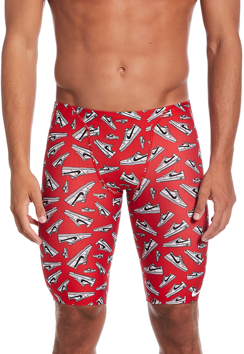 Stay focused on your race with the Nike Men's Hydrastrong Multiprint Jammer. These swim bottoms are made of a chlorine-resistant polyester blend that won't snag for lasting wear. The full liner and elastic drawstring provide a stay-in-place fit that keeps you covered, while the multiprint adds a pop of color.