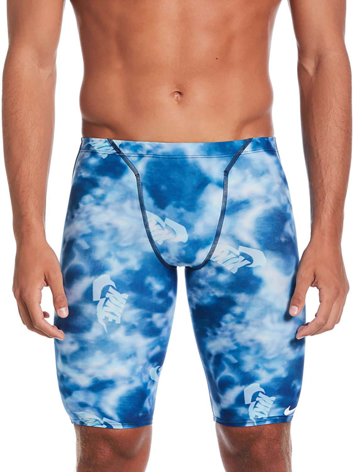 Stay focused on your race with the Nike Men's Hydrastrong Multiprint Jammer. These swim bottoms are made of a chlorine-resistant polyester blend that won't snag for lasting wear. The full liner and elastic drawstring provide a stay-in-place fit that keeps you covered, while the multiprint adds a pop of color.