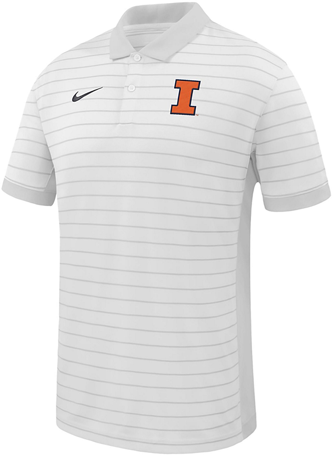 Make sure you are dressed right for gameday by wearing the Nike Men's Illinois Dri Fit Stripe Victory Polo Shirt. This polo provides a casual, lightweight feel thanks to polyester construction, and its team design helps boast about your favorite school.