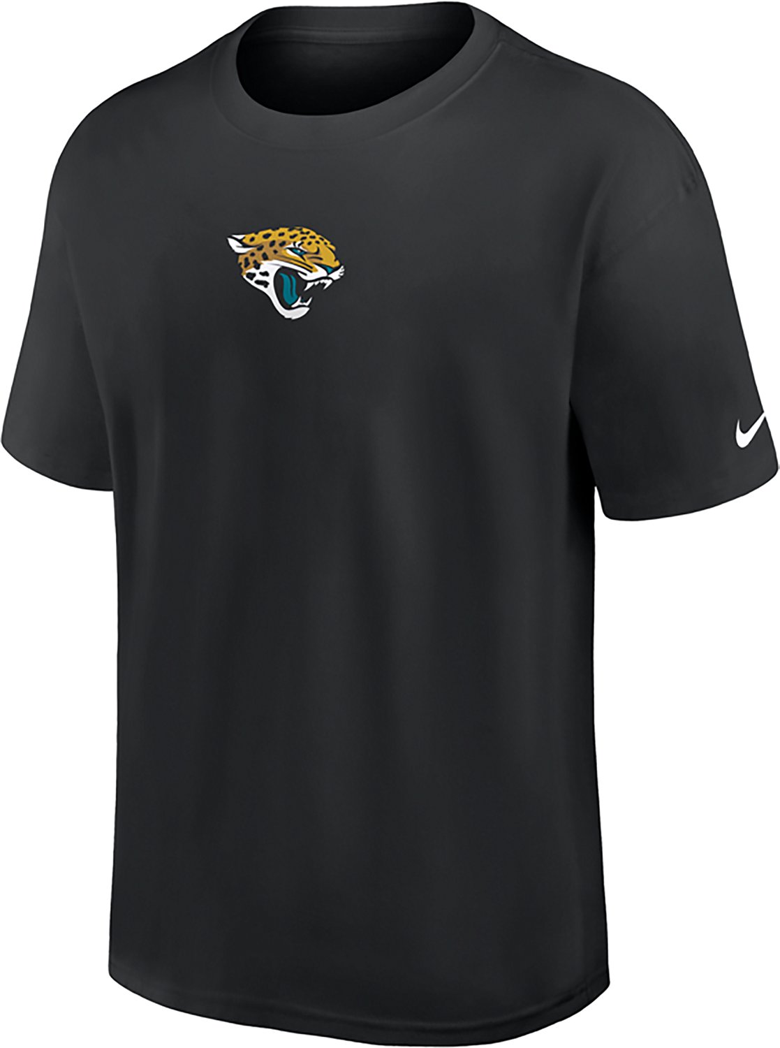 Support the Jacksonville Jaguars in bold comfort with the Nike Men's Jacksonville Jaguars Essential Heavy Max 90 Short Sleeve T-Shirt. This tee is crafted from heavyweight cotton with a Max 90 fit, giving it a structured, relaxed feel and dropped shoulders for a roomy, modern look. Featuring the essential Jaguars logo, this durable shirt is perfect for layering on cooler game days or wearing solo for a comfortable, confident display of your Jaguars pride.