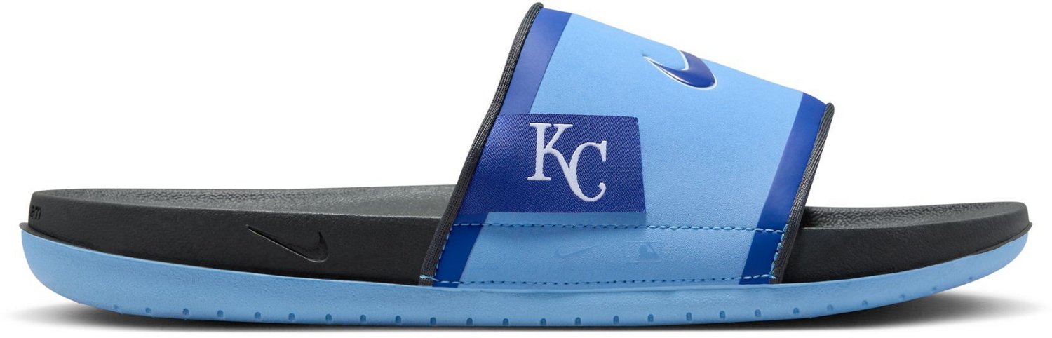 Slide into style with the Nike Men's Kansas City Royals Offcourt Slides. The Cold Fusion foam technology provides cushioned comfort, while the team logos show off your Royals pride.