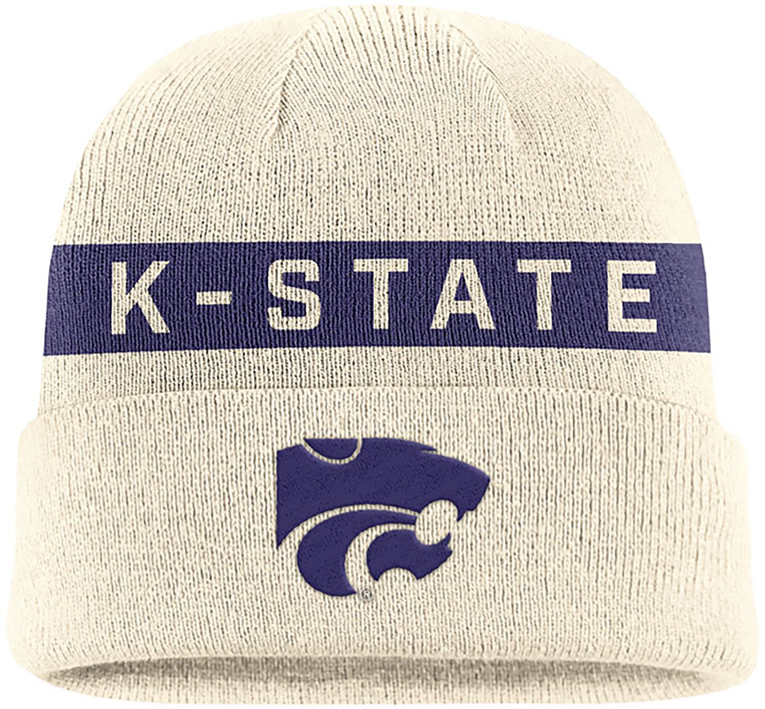 Head to the next game while wearing the Nike Men's Kansas State Natural School Peak Utility Cuff Beanie. The 100% acrylic construction offers a comfortable feel, while the team graphic shows off your fan pride.