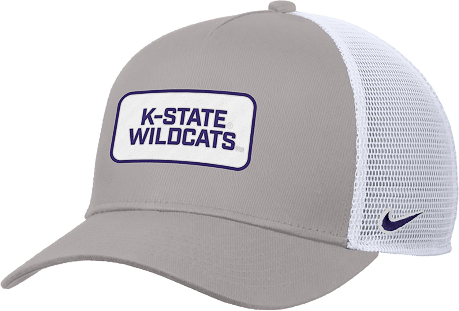 Head to the game while wearing the Nike Men's Kansas State Team Patch Rise Trucker Cap. The cotton front and polyester mesh back provide comfortable wear, while the team graphic puts your fan pride front and center.