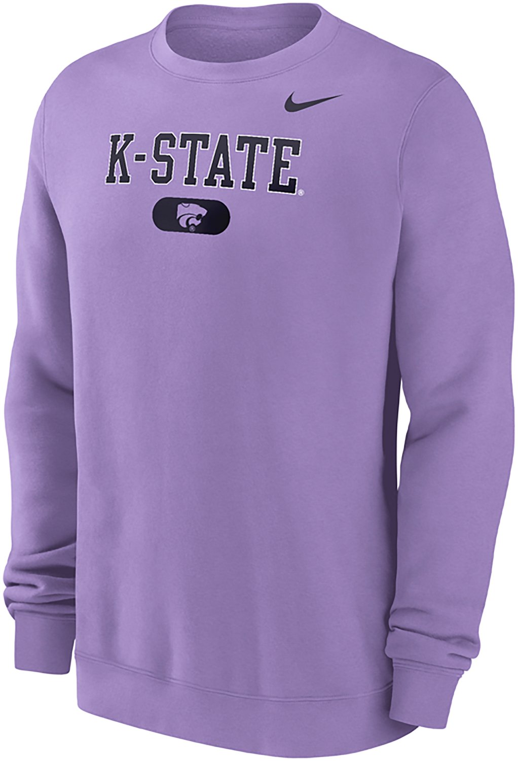 Show your support in style with the Nike Men's Kansas State University WIldcats Lavender Pill Long Sleeve Crew Fleece. The 80% cotton and 20% polyester fleece material is brushed and soft, and the Kansas State University WIldcats graphic print shows your school spirit.
