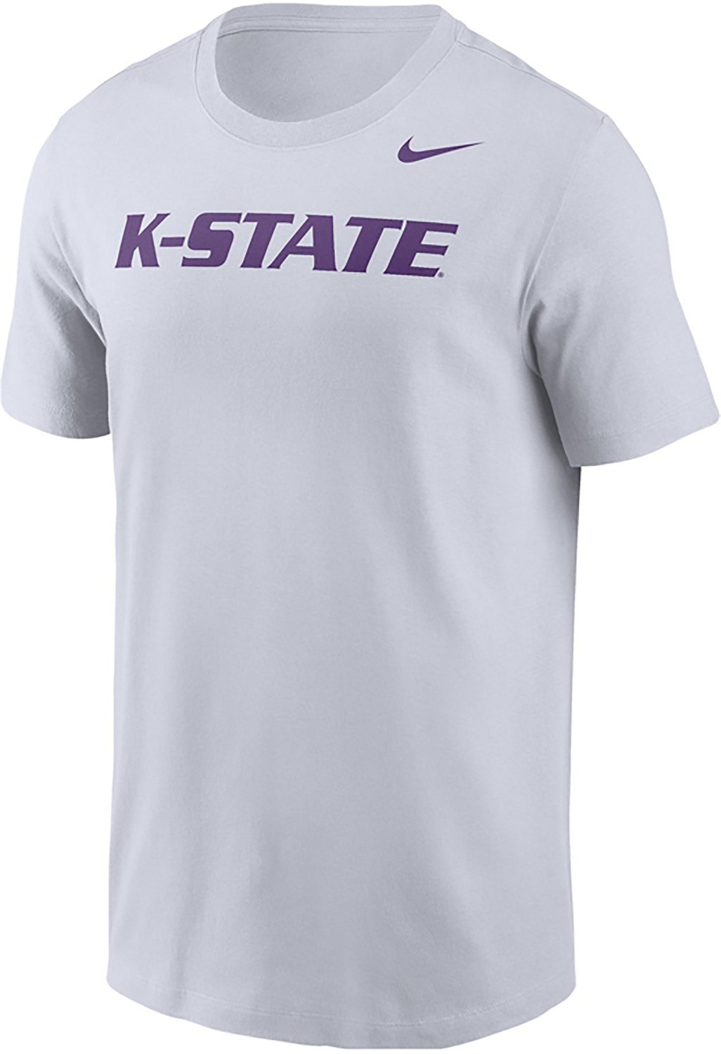 Make sure it's clear which school you root for by throwing on the Nike Men's Kansas State Wordmark T-shirt. This T-shirt is made of 100% cotton with short sleeves and a crew neck for casual comfort, and the school-based graphic puts your fandom front and center for all to see.