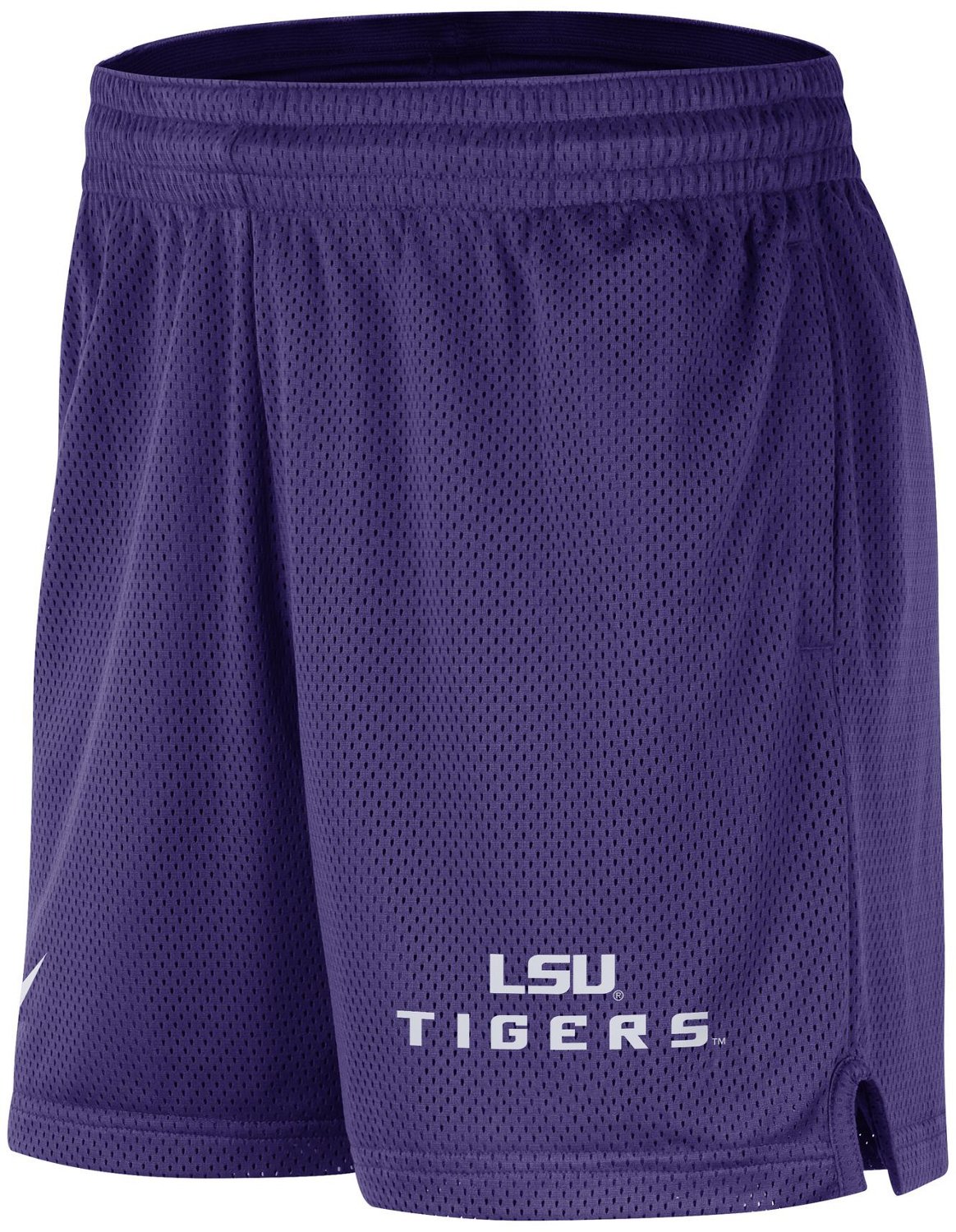 Watch the next Tigers game in style wearing the Nike Men's Louisiana State University Dri-FIT Shorts 10 in. The team design expresses your sporty side, and the polyester construction delivers a comfortable fit. The Dri-FIT technology gets rid of moisture to keep you feeling cool and dry.
