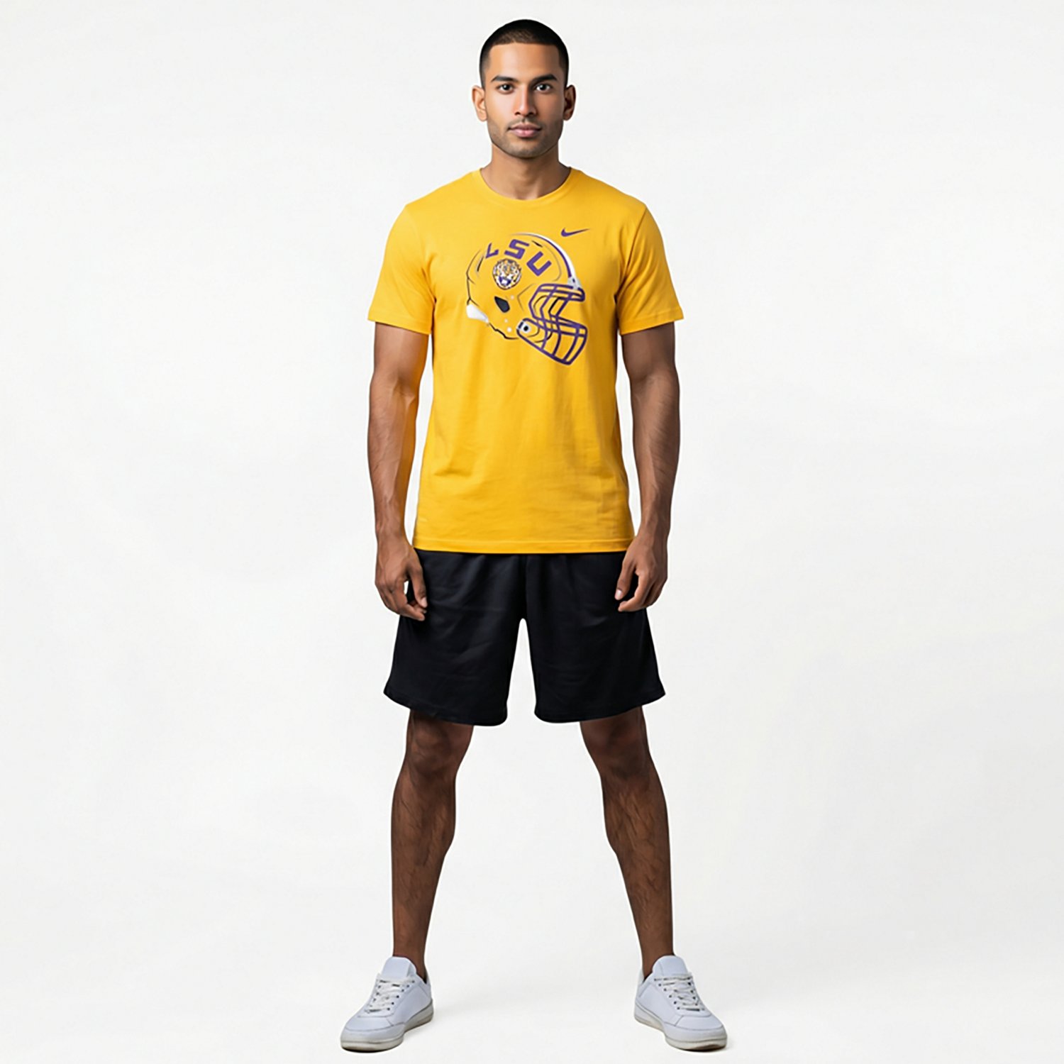 Show off your fan spirit when you wear the Nike Men's LSU Football Helmet T-shirt. This T-shirt is designed with a team graphic to let everyone know who you're cheering for on game day.