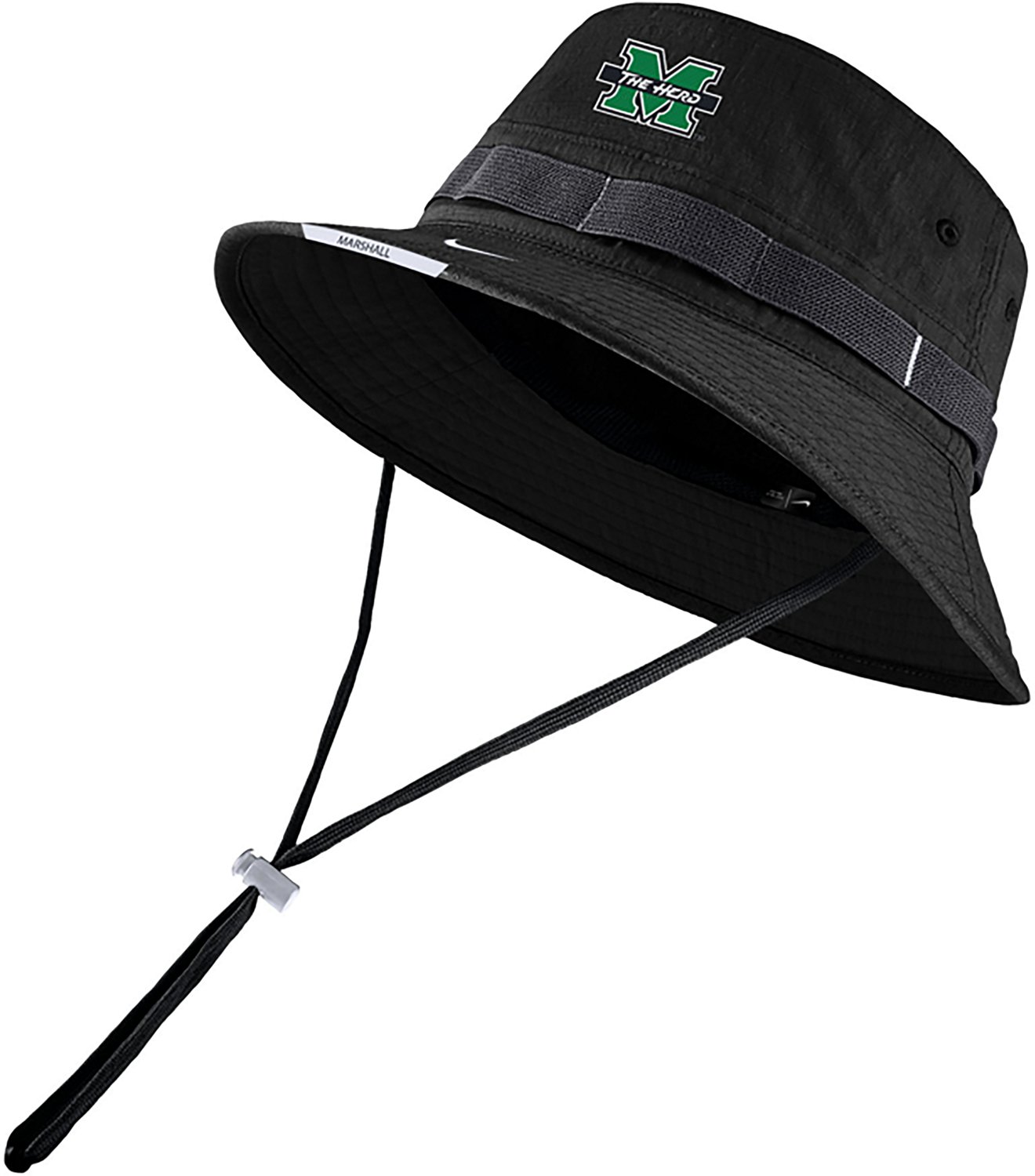Make sure you feel comfortable as the Thundering Herd take down the competition by wearing the Nike Men's Marshall Sideline Boonie Hat. This hat is made of 55% cotton, 42% nylon and 3% spandex and features a drawstring for a great fit, and the team theme helps you proudly display your love for your school.