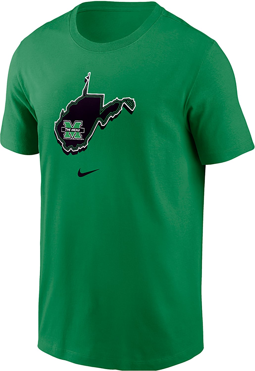 Make sure it's clear which school you root for by throwing on the Nike Men's Marshall State Logo T-shirt. This T-shirt is made of 100% cotton with short sleeves and a crew neck for casual comfort, and the school-based graphic puts your fandom front and center for all to see.